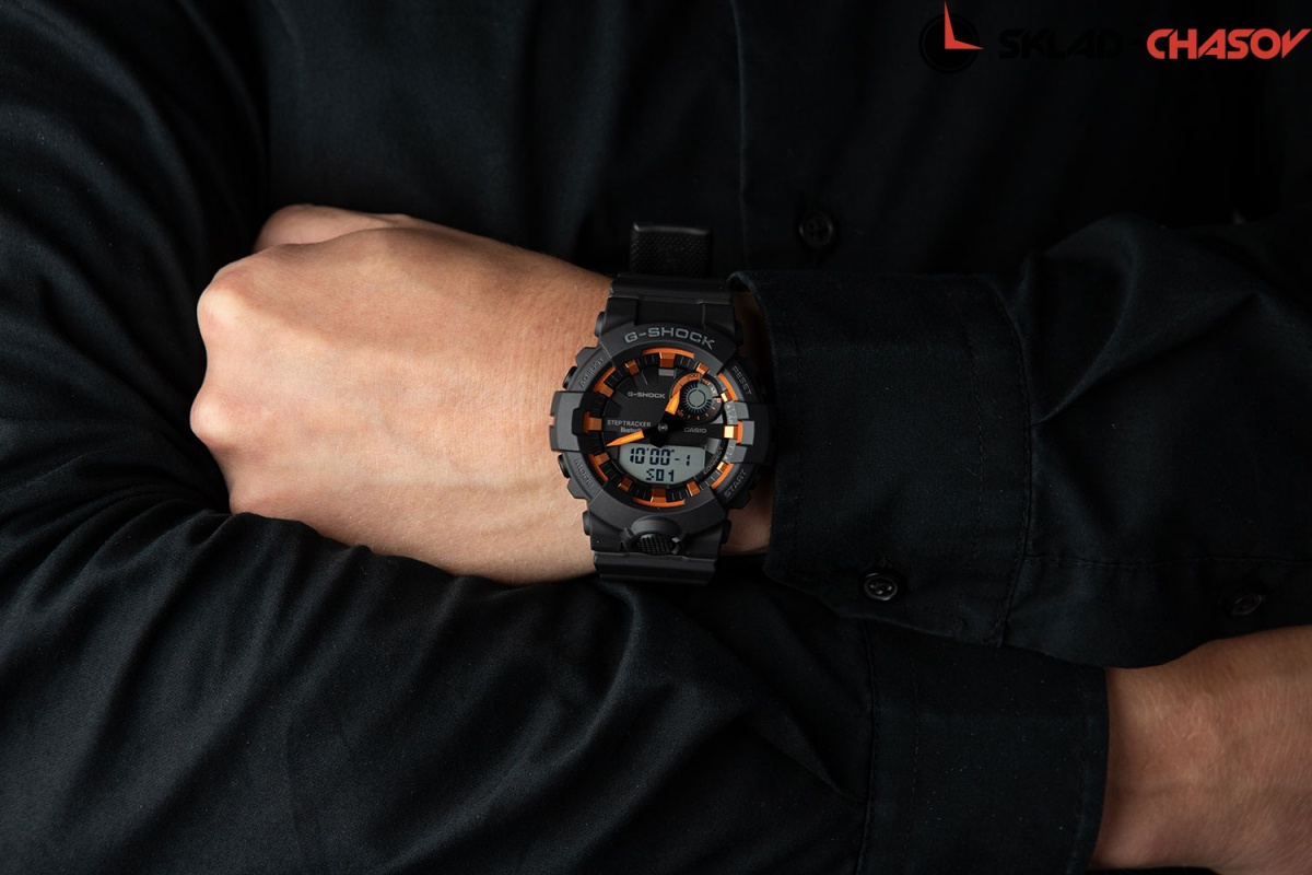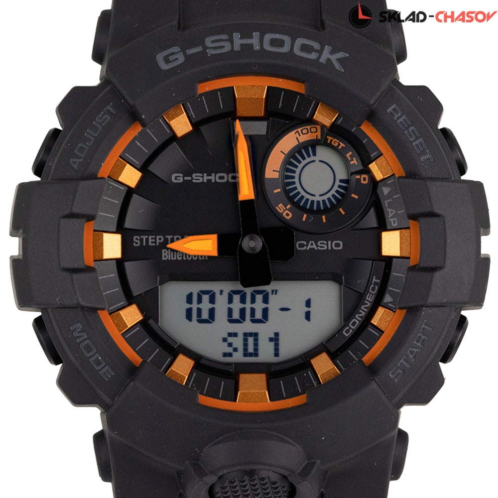 Часы G-Shock с трекером активности подойдут как для обычного лайфстайла, будучи ярким и крутым аксессуаром, так и для ежедневных тренировок или пробежек. G-Squad. Противоударный корпус защищает механизм от ударов и вибрации. Светодиодная автоматическая супер-подсветка. При повороте руки дисплей освещается ярким светом. Цвет подсветки: белый. Необритовое светонакопительное покрытие обеспечивает длительное послесвечение в темноте даже после кратковременного нахождения на свету. 3-осевой акселерометр автоматически начинает отсчет шагов на дисплее, когда вы начинаете бегать или участвовать в других действиях во время ношения часов. Шагомер измеряет количество шагов от 0 до 999999. Отображение пройденных шагов за последние 11 часов на 6-ти уровневом графике. Установка цели в диапазоне от 1000 до 50 000. Звуковое напоминание об отсутствии активности и достижении цели. Синхронизация со смартфоном через Bluetooth. Совместимость: смартфоны на базе Android 6.0 или выше, iPhone на базе iOS 10 или выше. При подключении к смартфону часы корректируют текущее время 4 раза в день, а также копируют настройки мирового времени. Мировое время - 300 городов. Функция поиска телефона. Приложение G-SHOCK Connected Phone позволяет настроить параметры для журнала счетчика шагов с пятью уровнями интенсивности упражнений, рассчитать сожженные калории и шаги. Приложение так же позволяет создавать комбинации таймера и отправлять их на часы, хранить и просматривать данные измерений. Одновременное отображение текущего времени в двух разных часовых поясах. Автоматический переход на зимнее и летнее время. 12-ти и 24-х часовой формат времени. Секундомер с целевым таймером и двумя точностями показаний: 1/100с (до 1ч) и 1с (после 1ч), время измерения 24ч. Возможность установить 10 целевых периодов. Память на 200 этапов (дата, время, время круга). SPLIT-хронограф. Таймер обратного отсчета с 5-ю предустановленными интервалами измерений и автоповтором до 20 раз. Диапазон отсчета от 1с до 1ч. Функция перемещения стрелок для беспрепятственного просмотра информации на цифровых дисплеях. Функция отключения/включения звука. Функция поиска телефона. Полимерный ремешок.