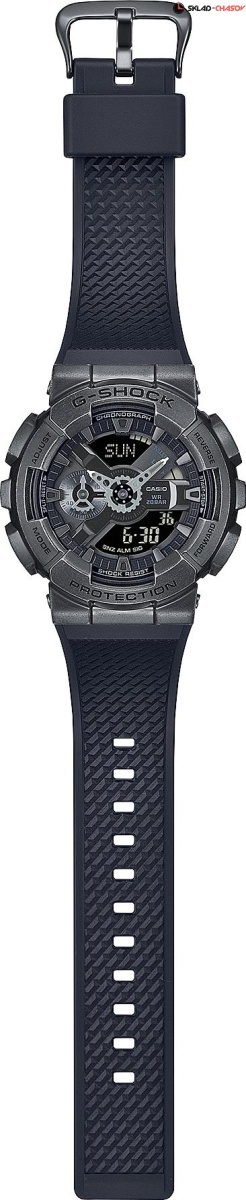 Релиз представляет собой перерождение легендарного и самого продаваемого корпуса за всю историю бренда — G-SHOCK GA-110 в новом стальном обличии! Крупный корпус часов выполнен из полимера, поверх которого расположена литая стальная накладка черного цвета и яркий циферблат в рейв стилистике. Благодаря подобной структуре корпуса, часы обладают великолепным внешним видом и абсолютной джишоковой ударопрочностью. Водозащита 200 метров, минеральное стекло, подсветка, таймер и секундомер, ежечасный сигнал и многофункциональный будильник, — весь базовый часовой набор функций на месте.