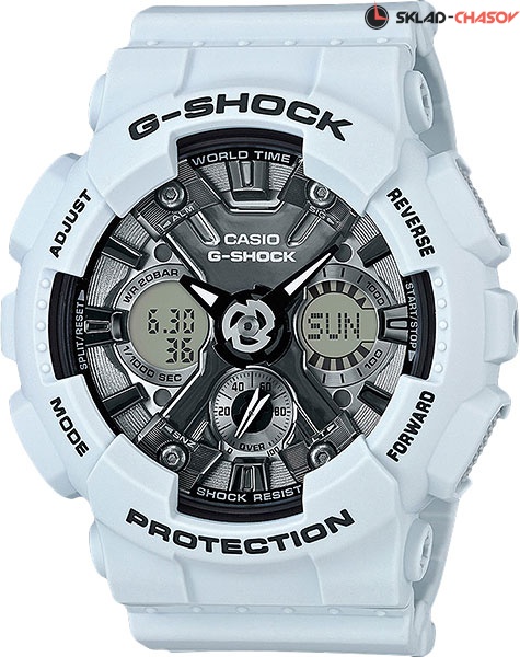 G-SHOCK S SERIES - это серия унисексовых и женских джишоков, имеющих меньший размер корпуса, в отличие от остальных часов G-SHOCK, что позволяет им оптимально выглядеть даже на женских запястьях. S-series. Противоударный корпус защищает механизм от ударов и вибрации. Защищены от магнитных полей. Циферблат подсвечивается светодиодом, функция автоподсветки освещает циферблат при повороте часов к лицу. Мировое время – 48 городов (29 часовых поясов), всемирное координированное время (UTC). Функция включения/отключения летнего времени. 12-ти и 24-х часовой формат времени. Секундомер с точностью показаний 1/1000с и временем измерения 100ч. Расчет скорости по выбранной дистанции. Сплит-хронограф. Таймер обратного отсчета от 1мин до 24ч с автоповтором.