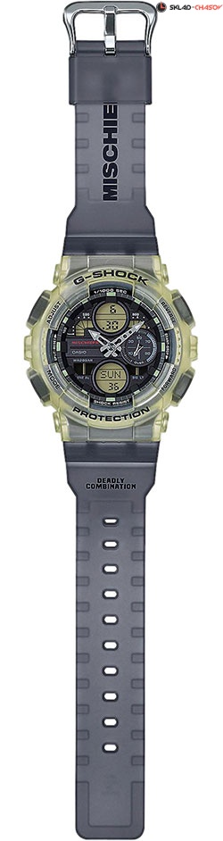 Эти современные часы отличаются не только модным дизайном, но и прекрасно сочетают в себе все необходимые функции для активного образа жизни девушки. G-Shock. Лимитированная серия созданная совместно с южнокорейским брендом одежды «Mischief». Полупрозрачный противоударный корпус защищает механизм от ударов и вибрации. Защищены от магнитных полей. Циферблат подсвечивается светодиодом, функция автоподсветки включает ее при повороте циферблата к лицу. 12-ти и 24-х часовой формат времени. Мировое время – 48 городов (29 часовых поясов), всемирное координированное время (UTC). Функция включения/отключения летнего времени. Секундомер с точностью показаний 1/1000с и временем измерения 100ч. Расчет скорости по выбранной дистанции. SPLIT-хронограф. Таймер обратного отсчета от 1мин до 24ч с автоповтором. Ремешок из полимерного материала.