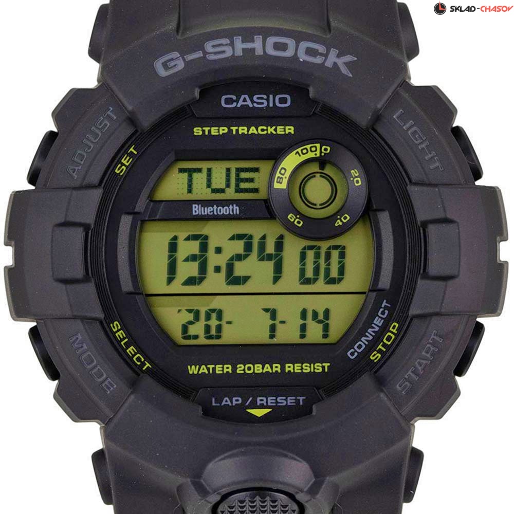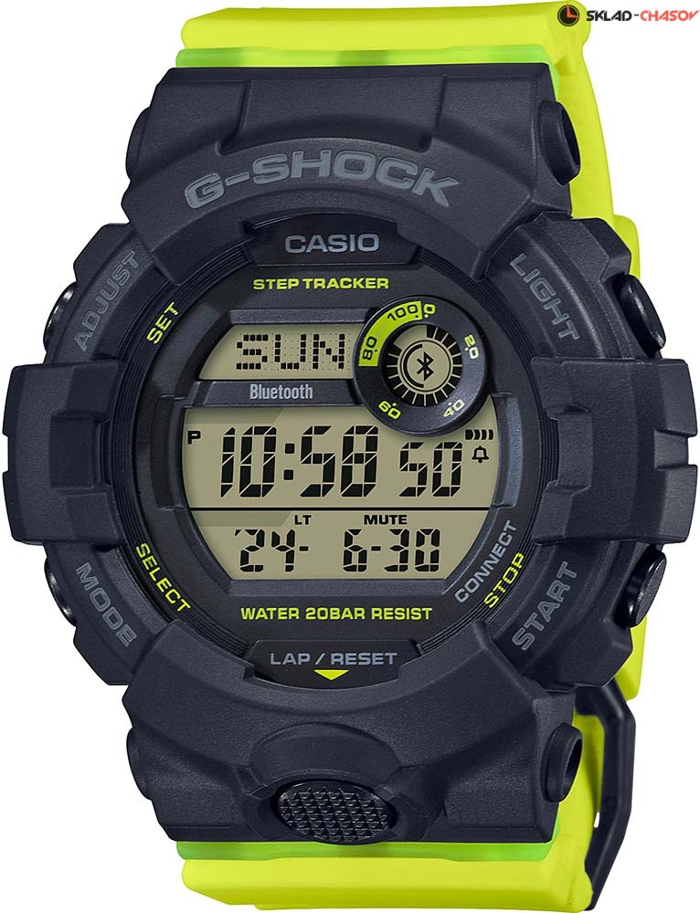 Надежность этих ярких противоударных часов с уменьшенным корпусом оценят не только молодые люди, но и девушки, которые не представляют свою жизнь без приключений и спорта. G-Squad. Унисекс. Модели этой серии оснащены многосегментными цифровыми дисплеями для улучшения читаемости. Цифровой дисплей разделен на верхнюю и нижнюю секции, в правом верхнем углу находится цифровой диск. Каждая область отображения показывает различные измерения, хронометраж и другую информацию, которая предоставляет полезные данные о вашей повседневной деятельности. Противоударный корпус защищает механизм от ударов и вибрации. Светодиодная автоматическая супер-подсветка с выбираемой длительностью свечения 1,5 или 3 сек. При движении руки дисплей освещается ярким светом. Послесвечение. 3-осевой акселерометр автоматически начинает отсчет шагов на дисплее, когда вы начинаете бегать или участвовать в других действиях во время ношения часов. Шагомер измеряет количество шагов от 0 до 999999. Отображение пройденных шагов за последние 7 часов на 6-ти уровневом графике. Синхронизация со смартфоном при помощи Bluetooth®. Приложение G-SHOCK Connected Phone позволяет настроить параметры для журнала счетчика шагов с пятью уровнями интенсивности упражнений, рассчитать сожженные калории и шаги. При подключении к смартфону часы корректируют текущее время 4 раза в день, а также копируют настройки мирового времени. Мировое время. Одновременное отображение текущего времени в двух разных часовых поясах. 12-ти и 24-х часовой формат времени. Секундомер с целевым таймером и двумя точностями показаний: 1/100с (до 1ч) и 1с (после 1ч), время измерения 24ч. Возможность установить 10 целевых периодов. Память на 200 этапов (дата, время, время круга). SPLIT-хронограф. Таймер обратного отсчета от 1мин до 1ч с автоповтором. Количество повторений таймера устанавливается от 1 до 20. Функция поиска телефона. Функция отключения/включения звука. Часы автоматически входят в спящий режим после определенного времени бездействия. Ремешок из полимерного материала.