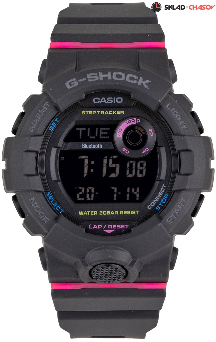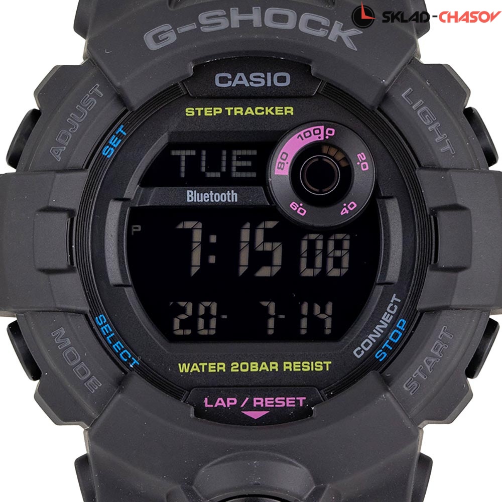 Надежность этих противоударных часов с уменьшенным корпусом оценят не только молодые люди, но и девушки, которые не представляют свою жизнь без приключений и спорта. G-Squad. Унисекс. Модели этой серии оснащены многосегментными цифровыми дисплеями для улучшения читаемости. Цифровой дисплей разделен на верхнюю и нижнюю секции, в правом верхнем углу находится цифровой диск. Каждая область отображения показывает различные измерения, хронометраж и другую информацию, которая предоставляет полезные данные о вашей повседневной деятельности. Противоударный корпус защищает механизм от ударов и вибрации. Светодиодная автоматическая супер-подсветка с выбираемой длительностью свечения 1,5 или 3 сек. При движении руки дисплей освещается ярким светом. Послесвечение. 3-осевой акселерометр автоматически начинает отсчет шагов на дисплее, когда вы начинаете бегать или участвовать в других действиях во время ношения часов. Шагомер измеряет количество шагов от 0 до 999999. Отображение пройденных шагов за последние 7 часов на 6-ти уровневом графике. Синхронизация со смартфоном при помощи Bluetooth®. Приложение G-SHOCK Connected Phone позволяет настроить параметры для журнала счетчика шагов с пятью уровнями интенсивности упражнений, рассчитать сожженные калории и шаги. При подключении к смартфону часы корректируют текущее время 4 раза в день, а также копируют настройки мирового времени. Мировое время. Одновременное отображение текущего времени в двух разных часовых поясах. 12-ти и 24-х часовой формат времени. Секундомер с целевым таймером и двумя точностями показаний: 1/100с (до 1ч) и 1с (после 1ч), время измерения 24ч. Возможность установить 10 целевых периодов. Память на 200 этапов (дата, время, время круга). SPLIT-хронограф. Таймер обратного отсчета от 1мин до 1ч с автоповтором. Количество повторений таймера устанавливается от 1 до 20. Функция поиска телефона. Функция отключения/включения звука. Часы автоматически входят в спящий режим после определенного времени бездействия. Ремешок из полимерного материала.