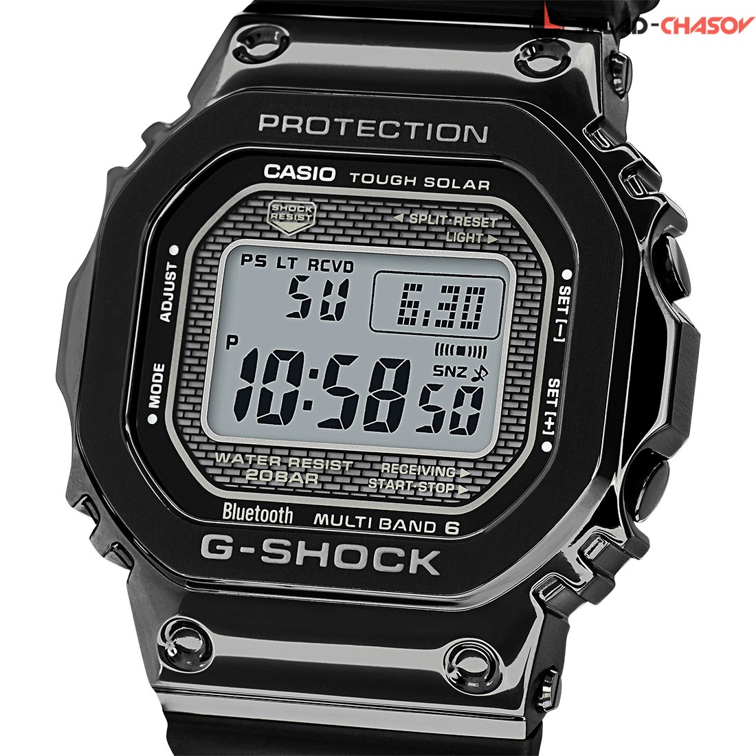 Перед вами лимитированное дополнение к наделавшему много шума, релизу Baselworld 2018 от Casio. Впервые за свою историю легендарный олдскульный корпус GMW-B5000 облачили в сталь. G-Shock Standard Digital. Часы с узнаваемым корпусом прямоугольной формы и дисплеем STN-LCD, который обеспечивает простоту считывания информации даже под углом. Внешний стальной корпус с черным износостойким ионным напылением, на безеле сохранена стальная текстура. Задняя крышка защищена сверхпрочным черным DLC-покрытием. Питание от солнечной энергии Tough Solar - солнечные батарейки большой мощности, индикатор уровня заряда батареи (до 7 уровней). Функция автоматического сохранения энергии. Время работы аккумулятора без подзарядки до 10 месяцев, при включенной функции сохранения энергии до 22 месяцев. Ударопрочная конструкция Core Guard: 4 трубки из нержавеющей стали объединяют корпус и заднюю крышку в единый моноблок, таким образом, механизм часов защищен от ударов и вибрации. Циферблат подсвечиваются ярким светодиодом, при недостаточном освещении во время поворота запястья в сторону лица подсветка включается автоматически. Модуль часов рассчитан на работу при низких температурах до -10°С/14°F. Технология Multi Band 6 позволяет принимать сигналы от шести радиовышек, расположенных в различных точках земного шара, которые передают временные сигналы от определенных атомных часов. Коррекция текущего времени радиосигналом на территории почти всей Европы, США, Японии и Китая. Отображение дней недели на шести языках, включая русский. Мировое время – 39 городов (39 часовых поясов), всемирное координированное время (UTC). Автоматический переход на зимнее и летнее время, возможность включения/отключения данной функции. 12-ти и 24-х часовой формат времени. Секундомер с двумя точностями показаний: 1/100с (до 1ч) и 1с (после 1ч) и временем измерения 24ч. Сплит-хронограф. Таймер обратного отсчета от 1мин до 24ч. Функция включения/отключения звука. Авиарежим - часы переключаются в режим оффлайн нажатием кнопки. Синхронизация со смартфоном по Bluetooth®. При подключении часов к смартфону: автоматическая корректировка текущего времени, установка времени для 300 городов, переключение между домашним и мировым временем, летнее время, настройка таймера, будильника, напоминаний. Вибро уведомление и световая индикация о событии созданном в приложении. Функция поиска телефона. Завинчивающаяся задняя крышка.