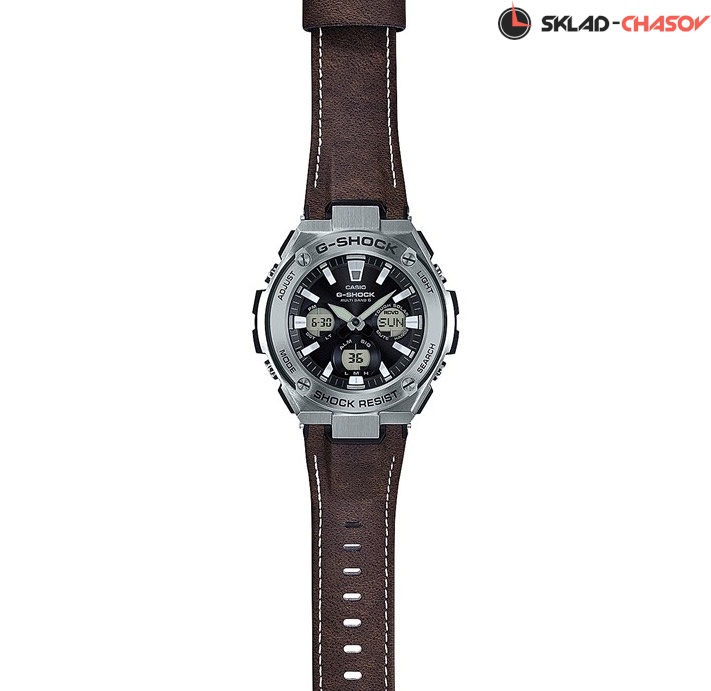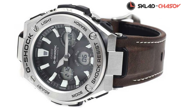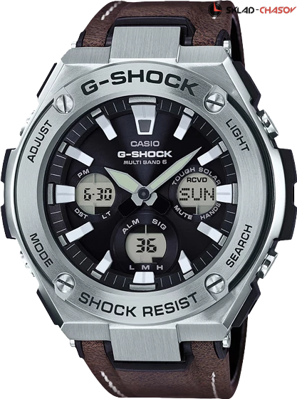 Фешн модель 2017 года из серии G-STEEL, сверхпрочные джишоки в стальном корпусе на браслете из уникального материала Tough Leather, разработанного Casio. Визуально он напоминает кожу, однако обладает гораздо большей прочностью и износостойкостью. В начинке у модели: солнечная батарея, радио-синхронизация времени MultiBand 6, автоматическая подсветка и еще более десятка функций. В этой коллекции дизайн G-SHOCK приближается к классическому образу механических наручных часов, при этом сохранив уникальную джишоковую начинку, что делает эти часы несравнимо прочнее и функциональнее, чем их механические собратья.