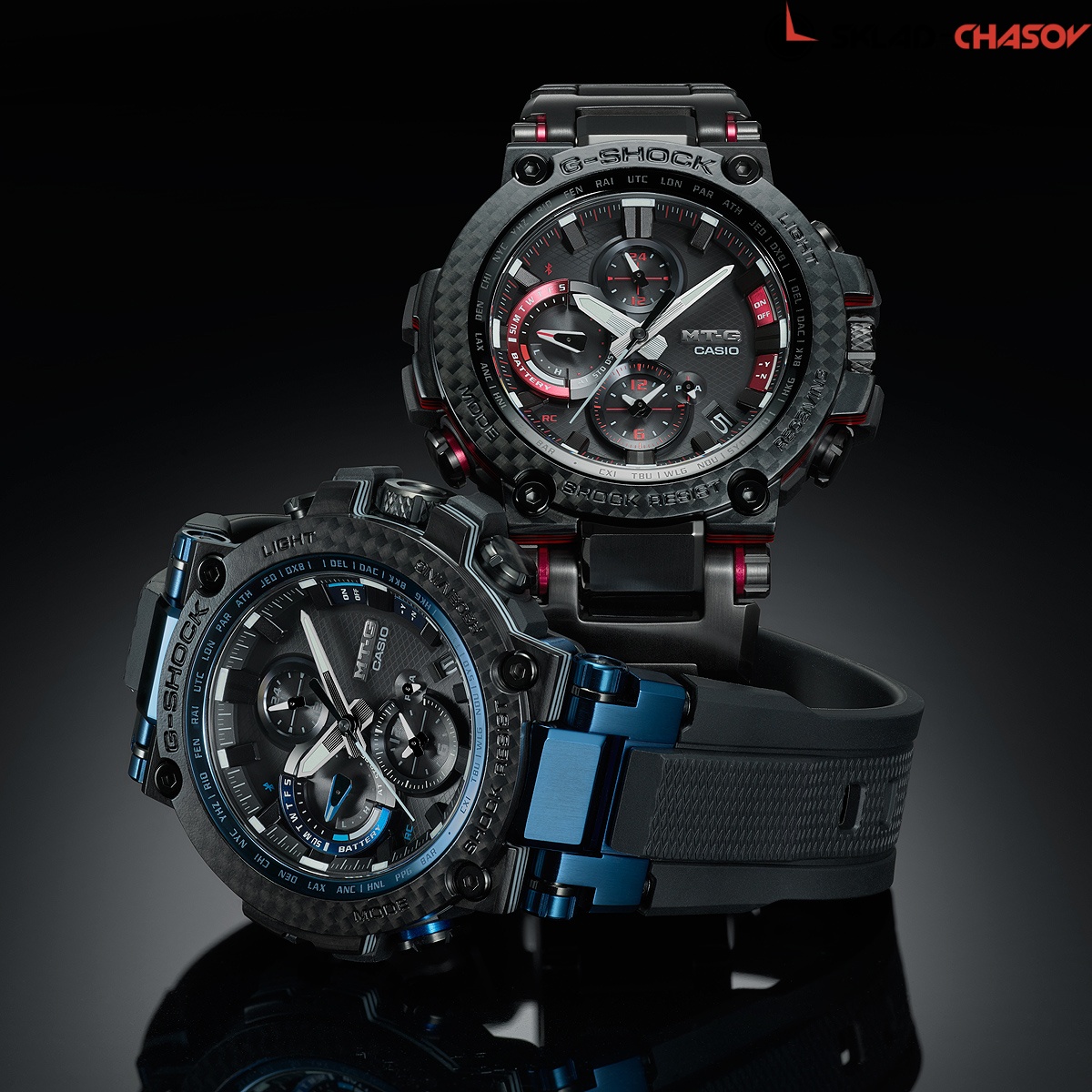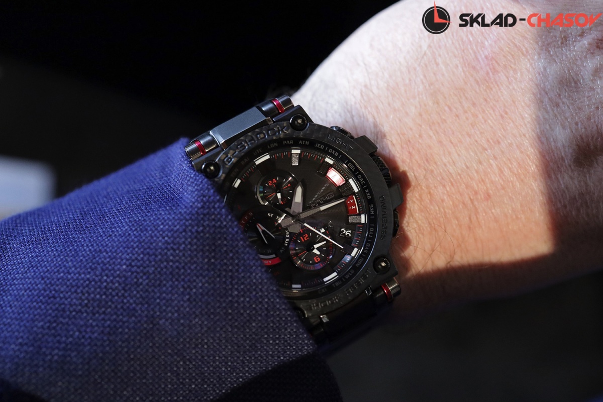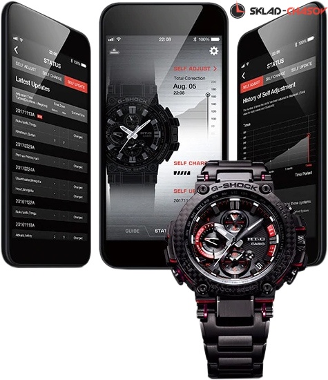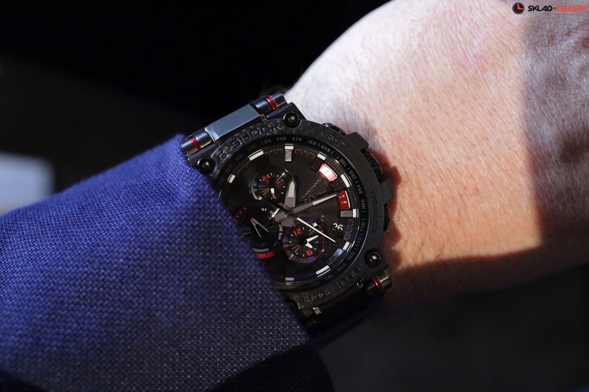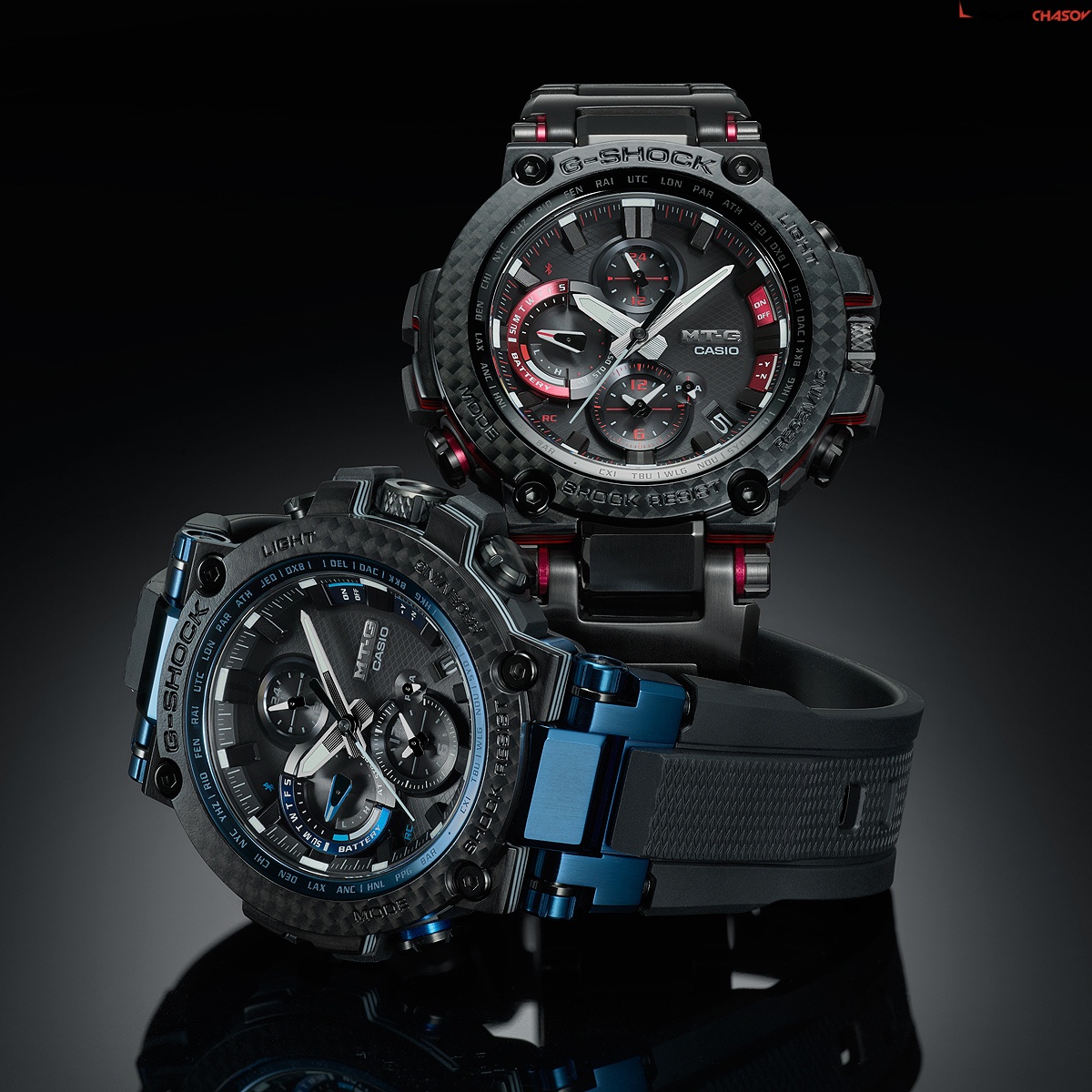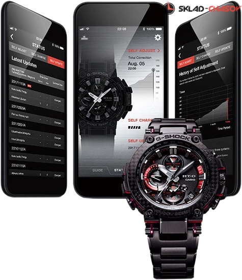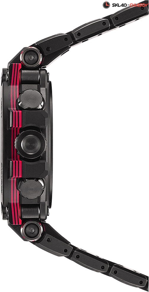 Премиальная серия G-Shock MTG подойдет ценителям высококачественных часов. MT-G. Часы премиальной серии G-SHOCK MTG собираются только в Японии на производстве Casio в Ямагата. Противоударный корпус защищает механизм от ударов и вибрации. Тройная защита от воздействия гравитационной, центробежной и вибрационной сил. Питание от солнечной энергии Tough Solar - солнечные батарейки большой мощности, индикатор заряда батареи. Функция автоматического сохранения энергии. Время работы аккумулятора без подзарядки - 5 месяцев, при включенной функции сохранения энергии - 18 месяцев. Циферблат подсвечивается ярким светодиодом. Цвет подсветки: белый. Необритовое светонакопительное покрытие обеспечивает длительное послесвечение в темноте даже после кратковременного нахождения на свету. Технология Multi Band 6 позволяет принимать сигналы от шести радиовышек, расположенных в различных точках земного шара, которые передают временные сигналы из определенных атомных часов. Коррекция текущего времени радиосигналом почти по всему миру: Англия, Германия, США, Япония и Китай. Функция автоматической коррекции положения стрелок проверяет положение стрелок каждый час и корректирует его в случае необходимости. Мировое время – 27 городов (39 часовых поясов), всемирное координированное время (UTC). Автоматический переход на зимнее и летнее время, возможность включения/отключения данной функции. Второй часовой пояс. 12-ти и 24-х часовой формат времени. Система Smart Access с помощью электронной заводной головки обеспечивает простой и удобный доступ ко всем важным функциям часов. Нажатие или поворот заводной головки позволяет переключаться между различными режимами и активировать будильник, таймер, секундомер, а также настраивать функцию мирового времени. Блокировка заводной головки. Секундомер с точностью показаний 1с и временем измерения 24ч. SPLIT-хронограф. Таймер обратного отсчета от 1мин до 24ч. Синхронизация со смартфоном по Bluetooth® через приложение SHOCK-Connected G. При подключении к смартфону часы корректируют текущее время (4 раза в день), настройки мирового времени (300 городов), таймера и будильника. Автоматическая корректировка часового пояса и летнего времени. Функция поиска телефона. Индикатор уровня заряда батареи телефона. Карбоновый безель. Завинчивающаяся заводная головка с защитой. Раскладывающаяся застежка, расстегиваемая одним касанием.