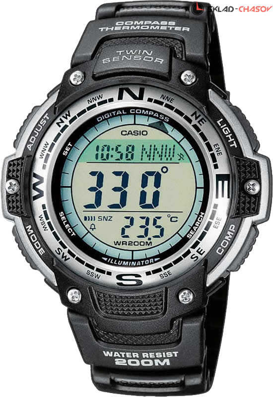 Наручные часы Casio SGW-100-1V – лучший вариант для путешествий и активного образа жизни. Среди функций и возможностей данной модели числятся будильник, компас, датчик температуры, таймер, секундомер, а также электролюминесцентная подсветка с функцией задержки отключения (горит еще несколько секунд после отпускания кнопки освещения) для комфортного пользования наручными часами Касио SGW1001V в условиях недостаточной освещенности. Корпус и браслет из пластика.