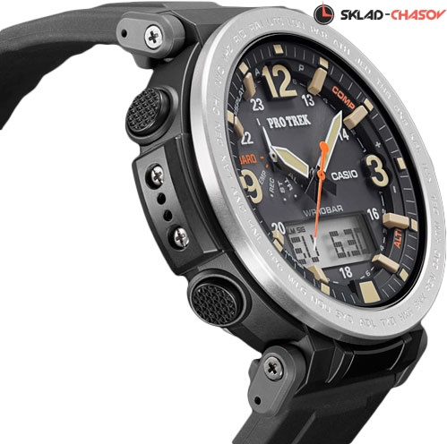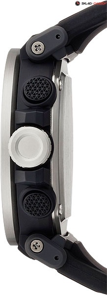 Часы, созданные для любителей активного отдыха, сочетают в себе самые продвинутые технические характеристики в привлекательном внешнем виде. Multi-Field Line. Питание от солнечной энергии Tough Solar - солнечные батарейки большой мощности, индикатор заряда батареи. Функция автоматического сохранения энергии. Время работы аккумулятора без подзарядки приблизительно 7 месяцев, при включенной функции сохранения энергии приблизительно 25 месяцев. Модуль часов рассчитан на работу при низких температурах до -10°С/14°F. Двойная светодиодная подсветка обеспечивает освещение не только ЖК-дисплея, но и всего циферблата, при недостаточном освещении во время поворота запястья в сторону лица подсветка включается автоматически. Светонакопительное покрытие необрит продолжает светиться в темноте даже после непродолжительного пребывания на свету. Функция автоматической коррекции положения стрелок проверяет положение стрелок каждый час и корректирует его в случае необходимости. Мировое время – 29 городов (29 часовых поясов), всемирное координированное время (UTC). Функция включения/отключения летнего времени. 12-ти и 24-х часовой формат времени. Технология Triple Sensor позволяет точно и легко определять сторону света, температуру и атмосферное давление. Термометр от -10° до +60°С с точностью 0,1°C. Барометр - измерение атмосферного давления от 260 до 1100 гПа (от 195 до 825 мм рт. ст.). Встроенный цифровой компас. Диапазон измерения от 0° до 359° с точностью 1°. Высотомер - встроенный датчик барометрического давления с возможностью вывода результатов в единицах высоты над уровнем моря (от -700 до 10000 метров). Хранение до 40 записей о высотных точках рельефа местности - измеренной абсолютной высоты, даты и времени. Система Smart Access с помощью электронной заводной головки обеспечивает простой и удобный доступ ко всем важным функциям часов. Нажатие или поворот заводной головки позволяет переключаться между различными режимами и активировать будильник, таймер, секундомер, а также настраивать функцию мирового времени. Секундомер с точностью показаний 1/100с и временем измерения 24ч. Сплит-хронограф. Таймер обратного отсчета от 1мин до 1ч. Функция перемещения стрелок. Функция отключения/включения звука. Стальной безель. Завинчивающаяся заводная головка с защитой.