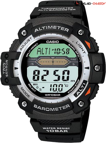 Модуль часов рассчитан на работу при низких температурах. Циферблат подсвечивается светодиодом. Мировое время. 12-ти и 24-х часовой формат времени. Секундомер с точностью показаний 1/100с и временем измерения 24ч. Таймер обратного отсчета от 1мин до 24ч. Высотомер - встроенный датчик барометрического давления с возможностью вывода результатов в единицах высоты над уровнем моря (от -700 до 10000 метров). Барометр - измерение атмосферного давления от 260 до 1100 гПа (от 195 до 825 мм рт. ст.). Термометр от -10 до 60°С. Функция отключения/включения звука.
