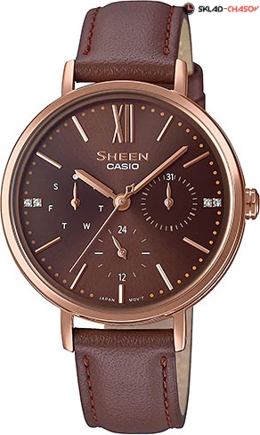 Великолепные часы для стильных девушек, которые стремятся в любой ситуации быть неотразимыми. Sheen. Женские часы с круглым корпусом. 12-ти и 24-х часовой формат времени. Число и день недели отображаются на отдельных циферблатах. Кожаный ремешок с классической застежкой.