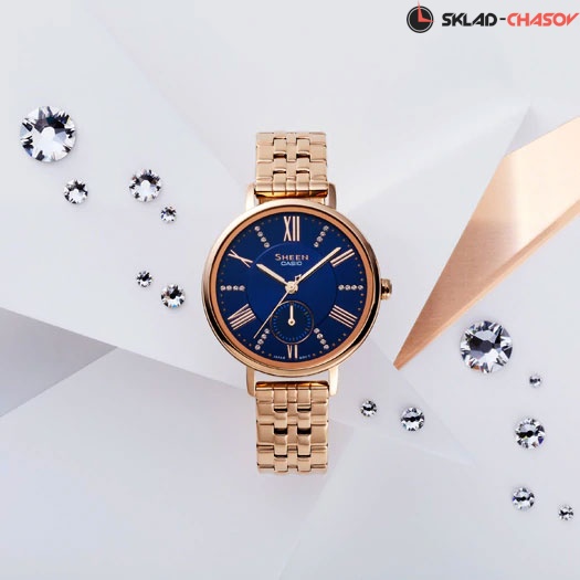Стильные часы для прекрасных девушек, которые знают толк в модных аксессуарах. Sheen. Секундная стрелка вынесена на отдельный циферблат. Раскладывающаяся застежка, расстегиваемая одним касанием.