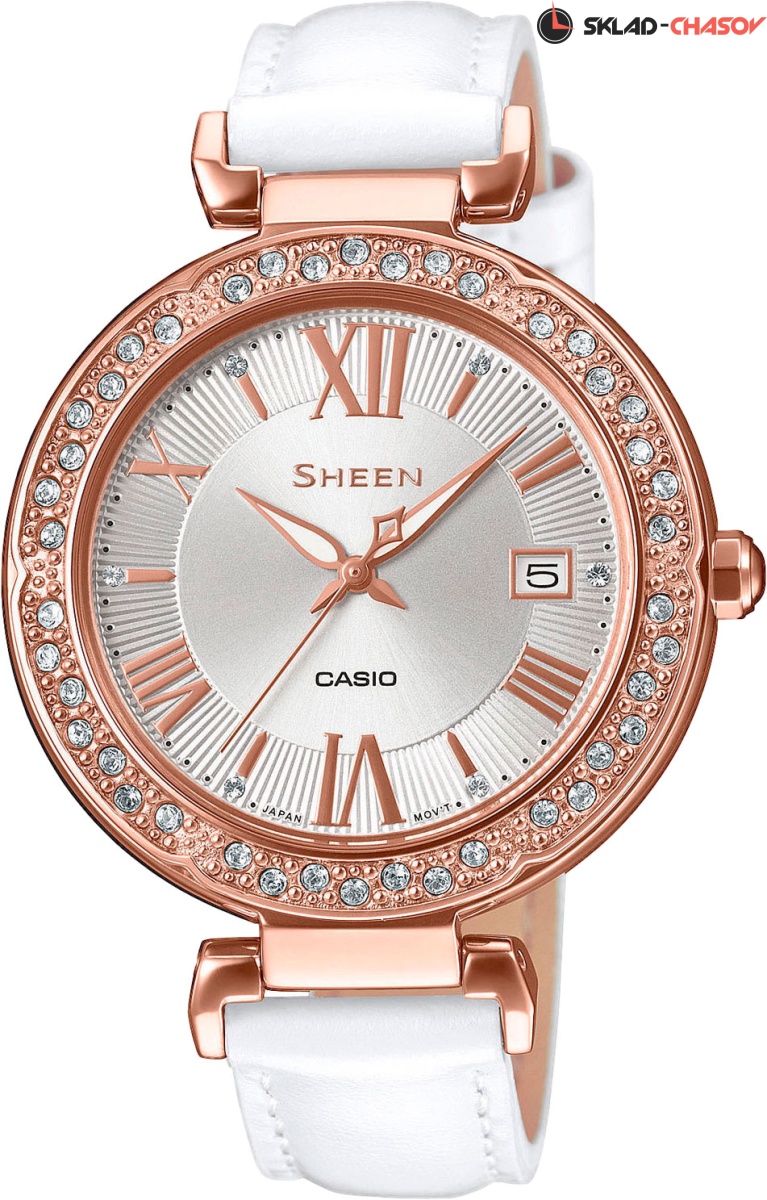 Стильные женские часики порадуют своим превосходным дизайном любую модницу. Sheen. Необритовое светонакопительное покрытие обеспечивает длительное послесвечение в темноте даже после кратковременного нахождения на свету. Циферблат с окошком даты. Кожаный ремешок с классической застежкой.