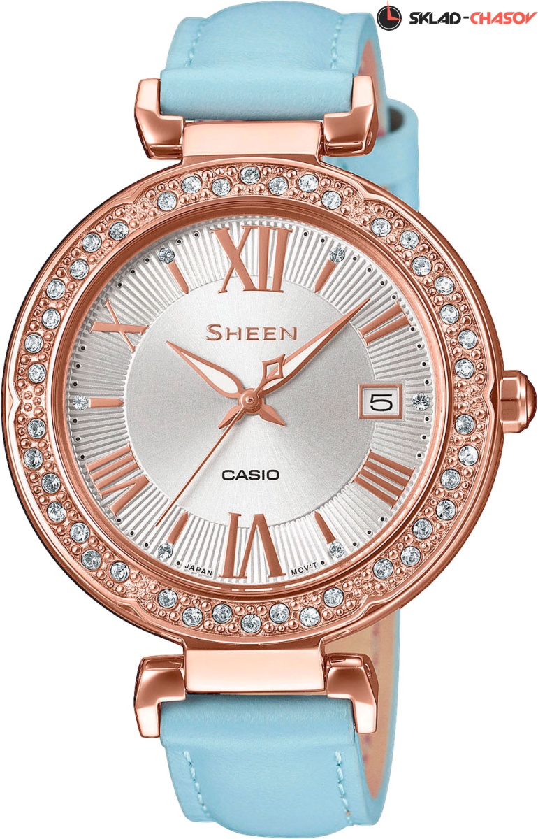 Стильные женские часики порадуют своим превосходным дизайном любую модницу. Sheen. Необритовое светонакопительное покрытие обеспечивает длительное послесвечение в темноте даже после кратковременного нахождения на свету. Циферблат с окошком даты. Кожаный ремешок с классической застежкой.