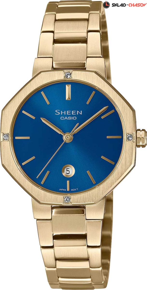 Часы для модных девушек, которые привыкли достигать совершенства во всем. Sheen. Ультратонкие женские часы с восьмиугольным корпусом. Циферблат выполнен по технологии Sunray (солнечные лучи). Метки в виде штрихов. Окошко даты находится в положении 6 часов. Батарея рассчитана на 2 года. Литой браслет с тройной раскладывающейся застежкой, расстегиваемой одним касанием.