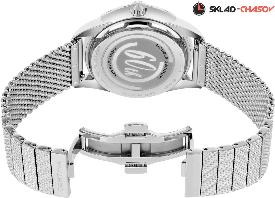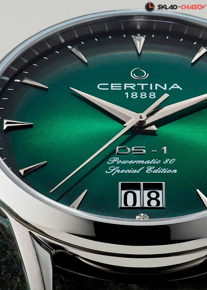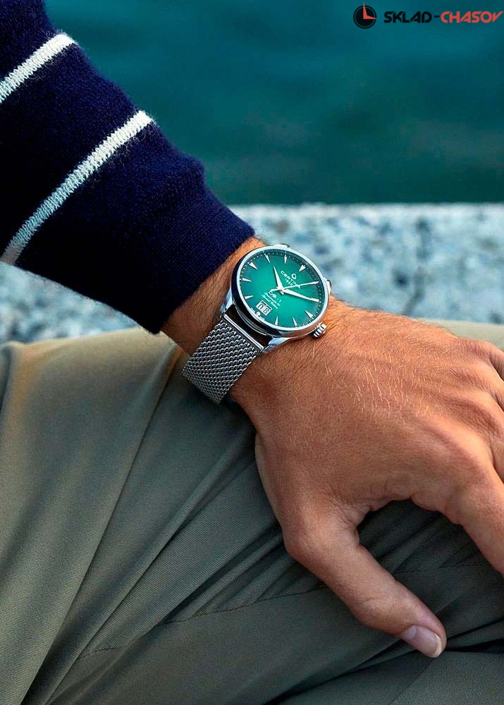 Мужские наручные часы DS-1 Big Date 60th Anniversary DS Concept Special Edition. Специальная серия. В механизме 25 камней, частота 21600 полуколебаний в час. Запас хода 80 часов. Круглый стальной корпус. Циферблат выполнен по технологии Sunray (солнечные лучи). Клиновидные стрелки в стиле Dauphine. Накладные метки в виде штрихов. Окошко большой даты находится в положении 6 часов. Рифленая заводная головка. Стальной браслет миланского плетения с раскладывающейся застежкой.