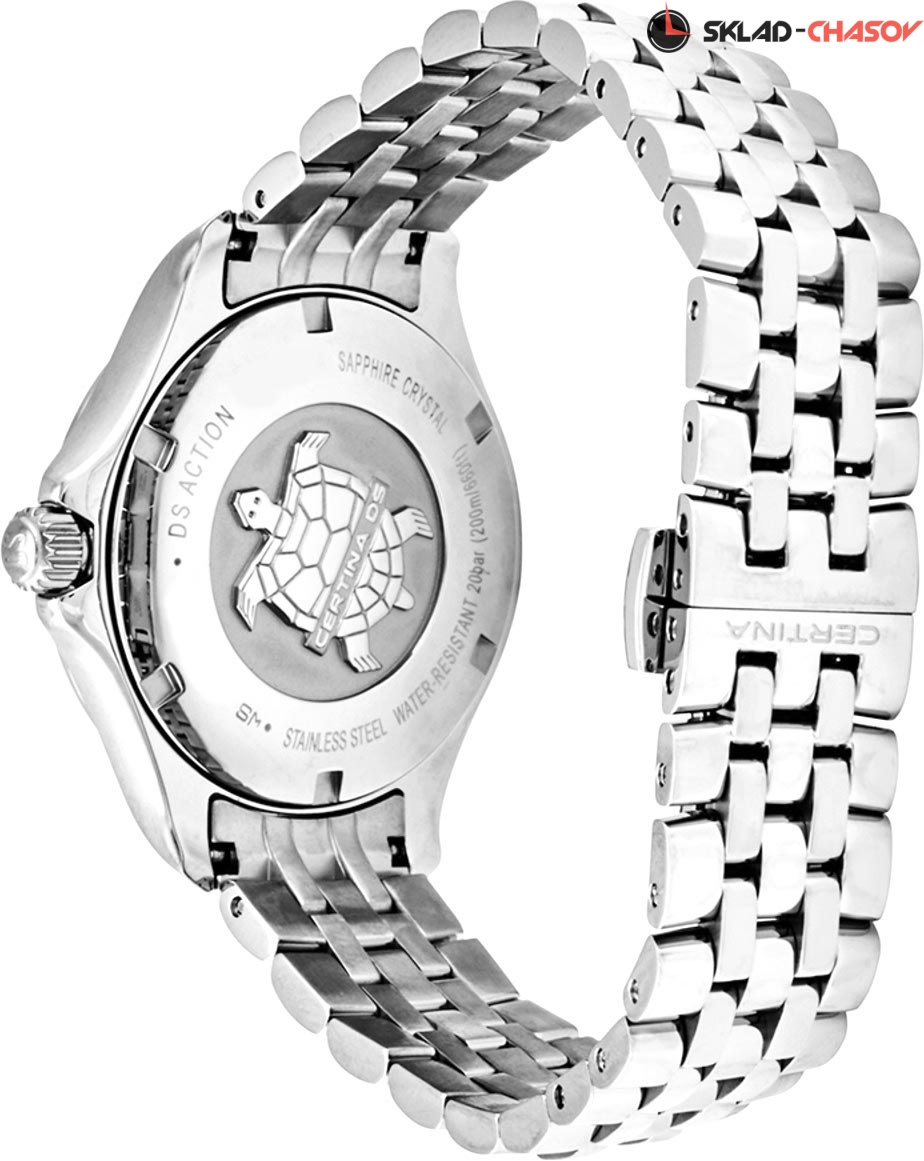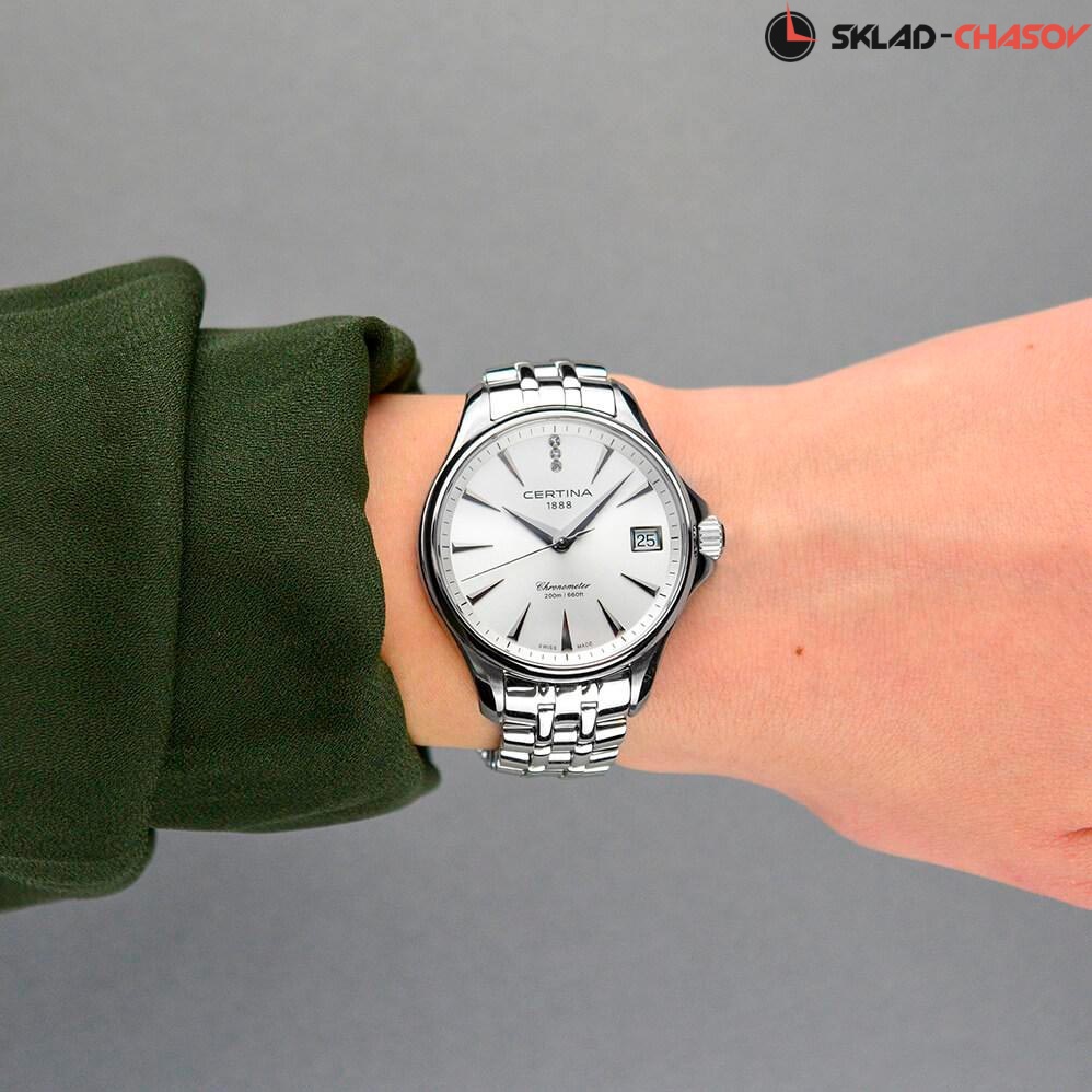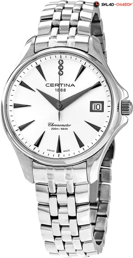 Стильный и изящный аксессуар для той, которую не пугает глубина. Время узнать, что скрыто под водой. Водонепроницаемые кварцевые женские часы. Хронометр сертифицирован C.O.S.C. Фирменная технология PreciDrive обеспечивает погрешность не более +/-10 сек в год (в 10 раз точнее обычных кварцевых часов). Функция индикации заряда (EOL). В механизме 3 камня. Круглый стальной корпус. Матовый циферблат украшен бриллиантами. Клиновидные стрелки в стиле Dauphine. Метки в виде штрихов. Окошко даты находится в положении 3 часа. Рифленая заводная головка с защитой. Надежный стальной браслет с раскладывающейся застежкой.