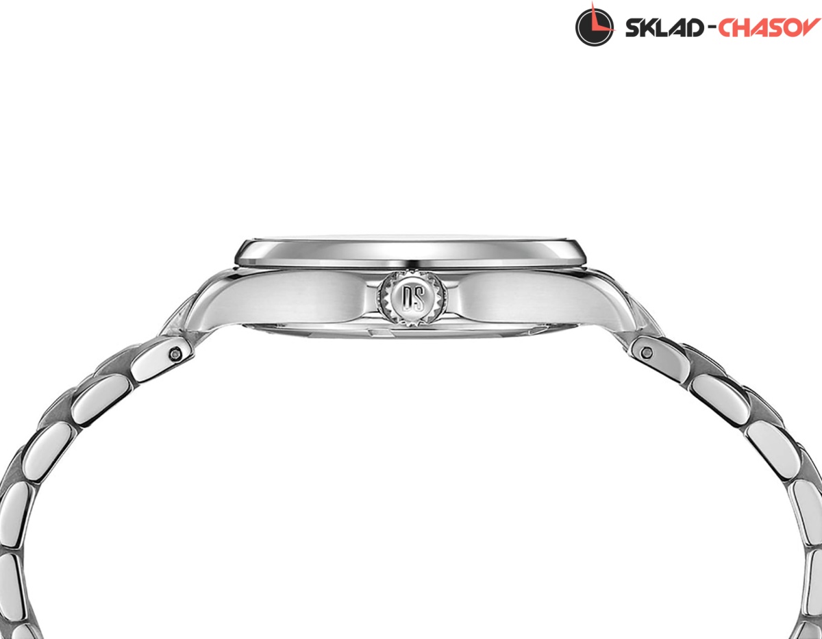 Аксессуар обладает изящным силуэтом, отражающим классический стиль и элегантность. Циферблат украшен 3 роскошными бриллиантами оттенка Top Wesselton. Часы комплектуются высокоточным кварцевым калибром F06.411 от швейцарской компании ETA, высокая точность механизма подтверждается сертификатом хронометра COSC. Концепция DS Concept гарантирует повышенную ударопрочность часов и сохранение водонепроницаемости до 20 бар. Одностороннее антибликовое покрытие сапфирового стекла. Корпус и браслет из гипоаллергенного титана. . Окошко даты, функция EOL. Диаметр корпуса: 33,8 мм.