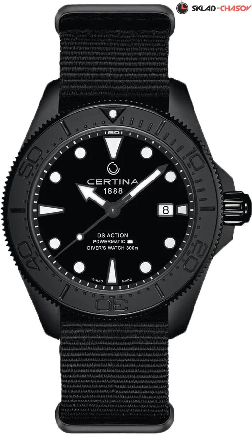 Практичные часы – незаменимый атрибут современного мужчины, помогающий не утратить реальность времени. Автоматические мужские часы DS Action Diver. В механизме 25 камней, частота 21600 полуколебаний в час. Запас хода 80 часов. Круглый стальной корпус. Рифленый безель с керамической вставкой. Матовый циферблат. Мечевидные стрелки в стиле Sword. Накладные метки в виде точек и штрихов. Метки и стрелки с люминесцентным покрытием, которое светится в темноте после непродолжительной зарядки на свету. Окошко даты находится в положении 3 часа. Рифленая заводная головка с защитой. Нейлоновый ремешок с классической застежкой.
