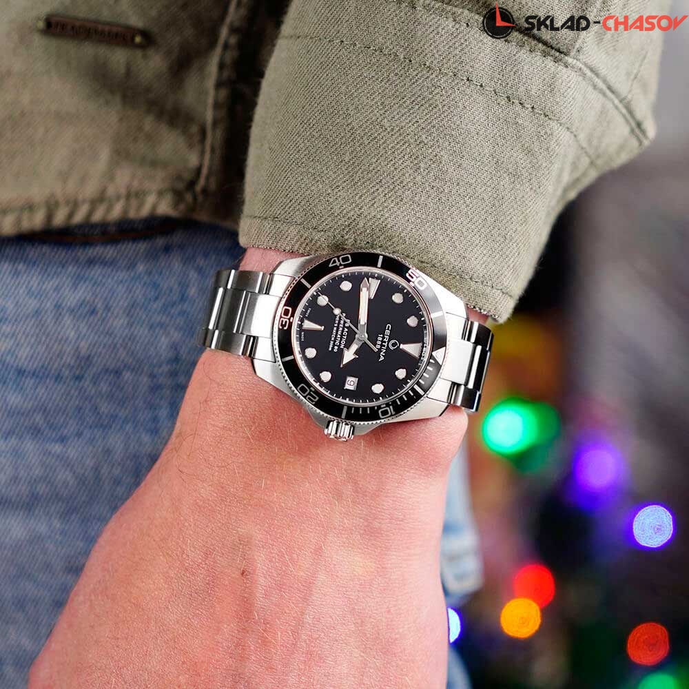 Практичные часы в спортивном дизайне привлекут внимание молодых людей с уверенной жизненной позицией. Спортивные наручные часы унисекс. Запас хода 80 часов. Круглый стальной корпус. Рифленый стальной безель с алюминиевой вставкой. Матовый циферблат. Мечевидные стрелки в стиле Sword. Накладные метки в виде штрихов и точек. Метки и стрелки с люминесцентным покрытием, которое светится в темноте после непродолжительной зарядки на свету. Окошко даты находится в положении 3 часа. Рифленая заводная головка с защитой. Задняя крышка украшена гравировкой. Надежный стальной браслет с раскладывающейся застежкой. Система быстрой замены браслета.