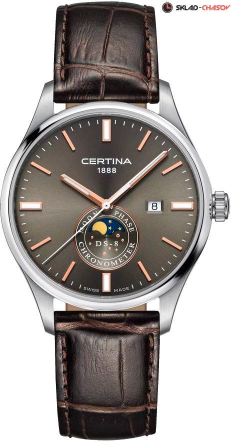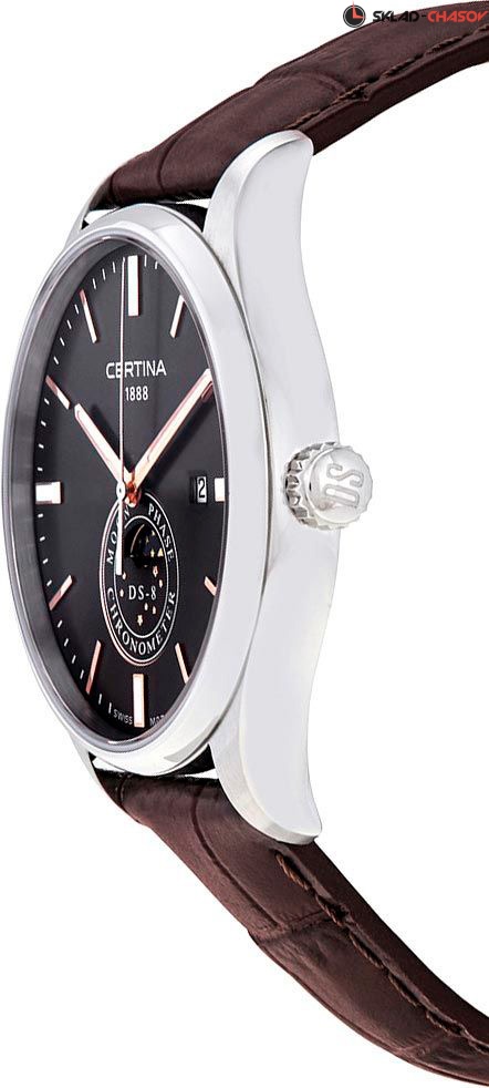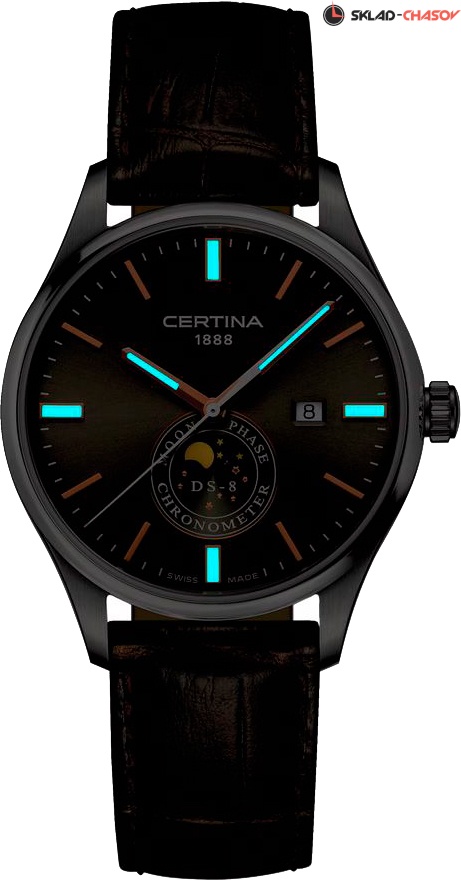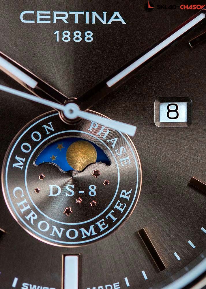 Прекрасный вариант наручных часов для деловых людей, которые не сидят на месте. Кварцевые мужские часы DS-8 Moon Phase. Хронометр сертифицирован C.O.S.C. Фирменная технология PreciDrive обеспечивает погрешность не более +/-10 сек в год (в 10 раз точнее обычных кварцевых часов). Функция индикации заряда (EOL). В механизме 3 камня. Круглый стальной корпус. Циферблат выполнен по технологии Sunray (солнечные лучи). Накладные метки в виде штрихов. Метки и стрелки с люминесцентным покрытием, которое светится в темноте после непродолжительной зарядки на свету. Окошко даты находится в положении 3 часа. Указатель фазы Луны. Рифленая заводная головка. Удобный кожаный ремешок с раскладывающейся застежкой.
