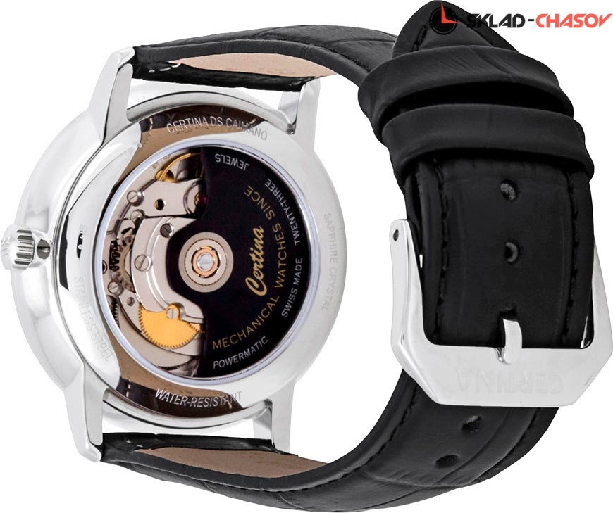 Автоматические мужские часы DS Caimano Powermatic 80. В механизме 23 камня, частота 21600 полуколебаний в час. Запас хода 80 часов. Круглый стальной корпус. Двухуровневый циферблат.