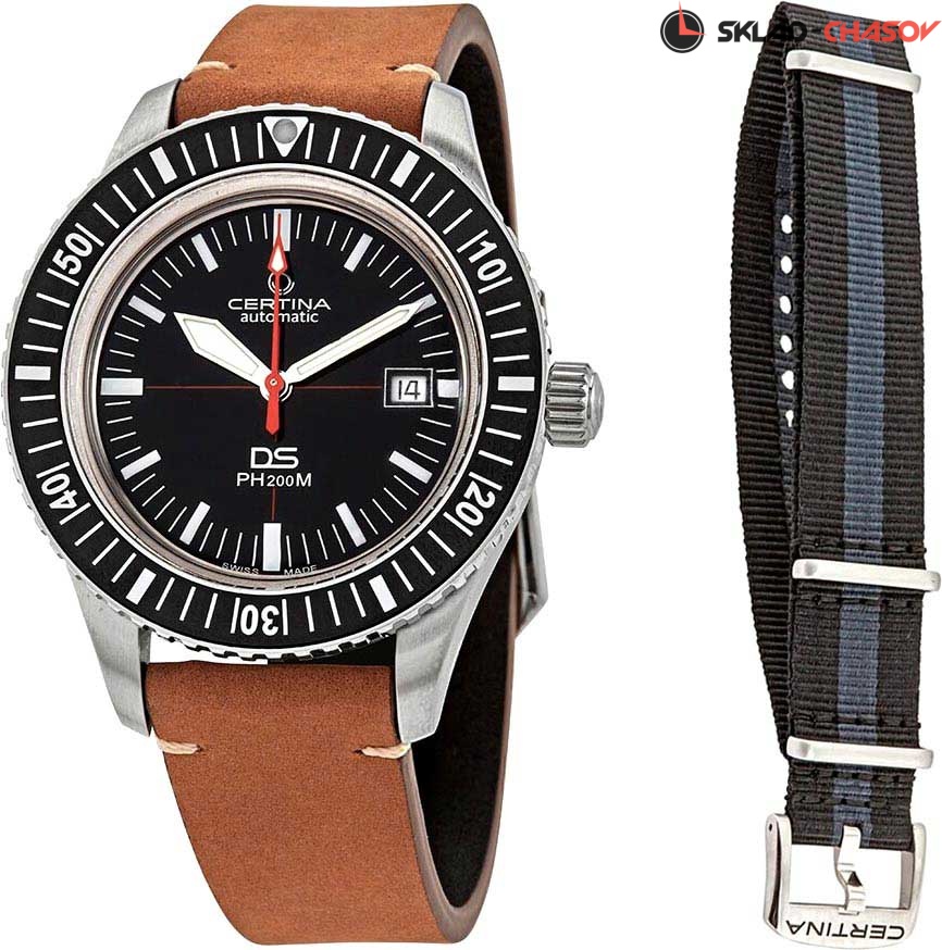 Автоматические мужские часы DS PH200M Powermatic 80. В механизме 25 камней, частота 21600 полуколебаний в час. Запас хода 80 часов. Круглый стальной корпус. Керамический выпуклый безель. Матовый циферблат. Накладные метки в виде штрихов. Мечевидные стрелки в стиле Sword. Метки и стрелки с люминесцентным покрытием, которое светится в темноте после непродолжительной зарядки на свету. Окошко даты находится в положении 3 часа. Рифленая заводная головка. Прозрачная задняя крышка. Удобный кожаный ремешок с классической застежкой. В комплекте — сменный нейлоновый ремешок.