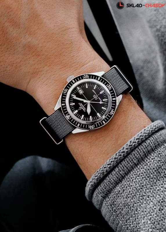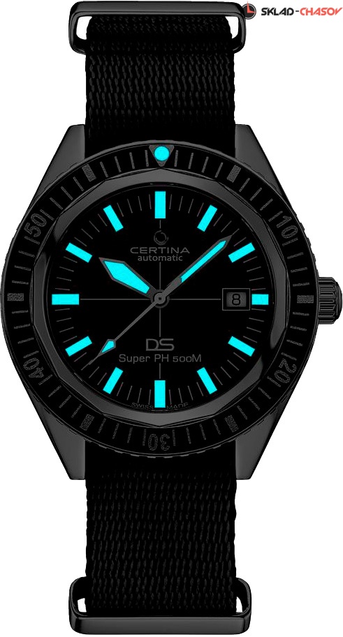 Стильные и практичные часы с высокой степенью водозащиты - прекрасный выбор для любителей дайвинга. Автоматические дайверские часы DS Super PH500M. В механизме 25 камней, частота 21600 полуколебаний в час. Запас хода 80 часов. Круглый стальной корпус. Алюминиевый безель. Циферблат выполнен по технологии Sunray (солнечные лучи). Мечевидные стрелки в стиле Sword. Метки в виде штрихов. Метки и стрелки с люминесцентным покрытием, которое светится в темноте после непродолжительной зарядки на свету. Окошко даты находится в положении 3 часа. Рифленая заводная головка. Прозрачная задняя крышка. Нейлоновый ремешок с классической застежкой.