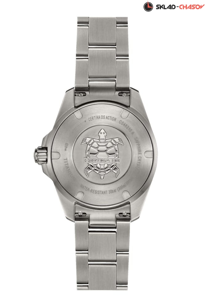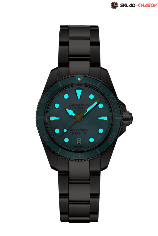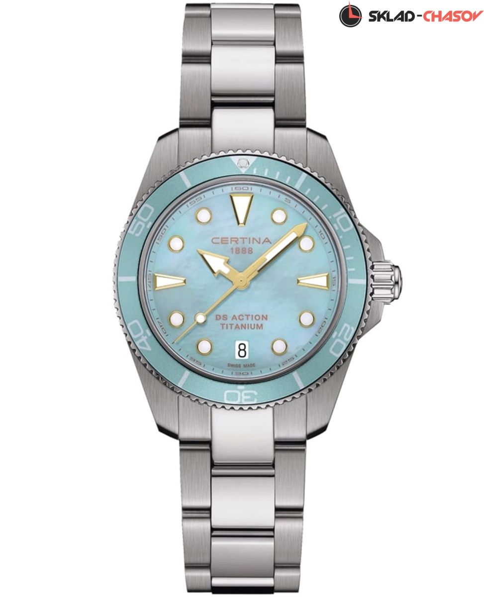Certina DS Action Lady C048.210.44.131.00 – элегантные женские часы, сочетающие изысканный стиль и высокую функциональность. Корпус диаметром 34,5 мм выполнен из титана, что обеспечивает лёгкость, прочность и гипоаллергенные свойства. Перламутровый циферблат украшен метками с люминесцентным покрытием, обеспечивающим отличную читаемость в любых условиях, и защищён сапфировым стеклом с антибликовым покрытием, устойчивым к царапинам. Безель с PVD-покрытием. Часы оснащены швейцарским кварцевым механизмом ETA F05.412 с технологией Precidrive™, обеспечивающей высокую точность хода. Функция EOL (индикатор окончания заряда батареи) своевременно предупреждает о необходимости замены элемента питания. Браслет из титана оснащён системой быстрой замены, позволяющей легко менять ремешки без использования инструментов. Водонепроницаемость 300 метров (30 бар) делает эту модель идеальным выбором для плавания и дайвинга.