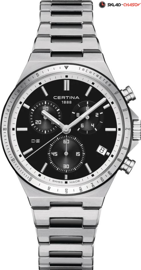 Мужские наручные часы Certina DS-7 C043.417.22.051.00. Механические с автоподзаводом. Пружина механизма заводится автоматически благодаря естественным движениям владельца в процессе ежедневной носки часов. Корпус изготовлен из высококачественной нержавеющей стали 316L с высокими антикоррозийными свойствами. На стрелки и отметки нанесен светонакопительный состав, благодаря этому считывать информацию с циферблата возможно и в темноте. На циферблате отображается текущее число месяца. Браслет из нержавеющей стали. Сапфировое стекло. Искусственно изготовленное стекло с высокой прочностью и устойчивостью к царапинам. Часы являются водонепроницаемыми до 10 Бар. Цвет корпуса: Серебристый. Цвет циферблата: Черный. Ширина (с заводной головкой): 41мм. Толщина: 10мм. Гарантия: 2 года.