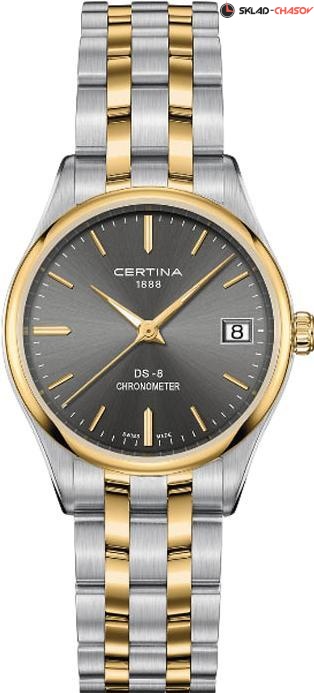 Женские наручные часы Certina DS-8 C033.251.22.081.00. Точный кварцевый механизм с аналоговой индикацией. Корпус изготовлен из высококачественной нержавеющей стали 316L с высокими антикоррозийными свойствами. На стрелки и отметки нанесен светонакопительный состав, благодаря этому считывать информацию с циферблата возможно и в темноте. На циферблате отображается текущее число месяца. Браслет из нержавеющей стали. Сапфировое стекло. Искусственно изготовленное стекло с высокой прочностью и устойчивостью к царапинам. Часы являются водонепроницаемыми до 10 Бар. Цвет корпуса: Серебристый. Цвет циферблата: Черный. Ширина (с заводной головкой): 30мм. Толщина: 9мм. Гарантия: 2 года.