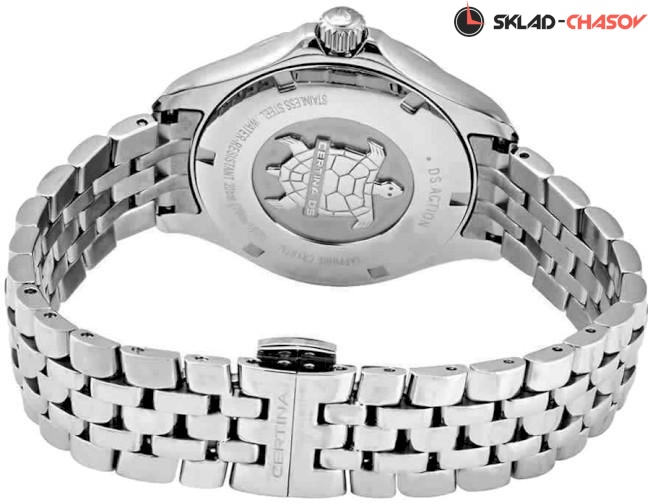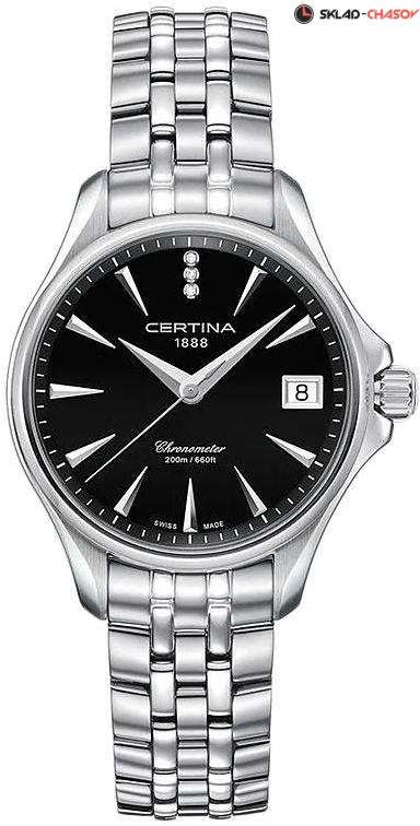 Женские наручные часы Certina DS Action C032.051.11.056.00. Точный кварцевый механизм с аналоговой индикацией. Корпус изготовлен из высококачественной нержавеющей стали 316L с высокими антикоррозийными свойствами. На циферблате отображается текущее число месяца. Браслет из нержавеющей стали. Прочное, устойчивое к царапинам минеральное стекло защищает часы от повреждений. Часы являются водонепроницаемыми до 20 Бар. Цвет корпуса: Серебристый. Цвет циферблата: Черный. Гарантия: 2 года.