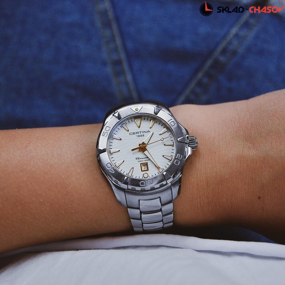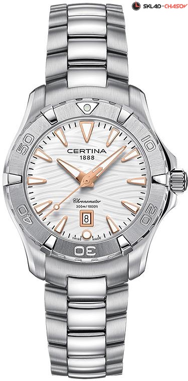 Водонепроницаемые наручные женские часы. Хронометр сертифицирован C.O.S.C. Фирменная технология PreciDrive обеспечивает погрешность не более +/-10 сек в год (в 10 раз точнее обычных кварцевых часов). Функция индикации заряда (EOL). В механизме 3 камня. Круглый стальной корпус. Фактурный циферблат. Клиновидные стрелки в стиле Dauphine. Накладные метки в виде штрихов. Метки и стрелки с люминесцентным покрытием, которое светится в темноте после непродолжительной зарядки на свету. Окошко даты находится в положении 3 часа. Рифленая заводная головка с защитой. Надежный стальной браслет с раскладывающейся застежкой.