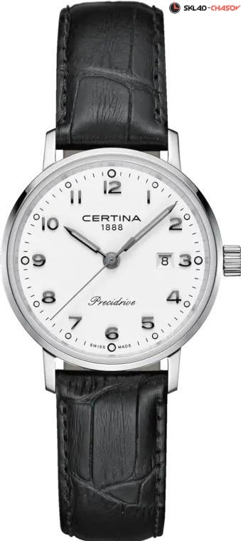 Женские наручные часы Certina DS Caimano C035.210.16.012.00. Точный кварцевый механизм с аналоговой индикацией. Корпус изготовлен из высококачественной нержавеющей стали 316L с высокими антикоррозийными свойствами. На стрелки и отметки нанесен светонакопительный состав, благодаря этому считывать информацию с циферблата возможно и в темноте. На циферблате отображается текущее число месяца. Ремешок изготовлен из кожи. Сапфировое стекло. Искусственно изготовленное стекло с высокой прочностью и устойчивостью к царапинам. Часы являются водонепроницаемыми до 10 Бар. Цвет корпуса: Серебристый. Цвет циферблата: Белый. Ширина (с заводной головкой): 28мм. Толщина: 7мм. Гарантия: 2 года.
