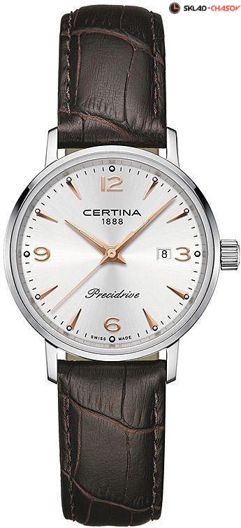 Женские наручные часы Certina DS Caimano C035.210.16.037.01. Точный кварцевый механизм с аналоговой индикацией. Корпус изготовлен из высококачественной нержавеющей стали 316L с высокими антикоррозийными свойствами. На стрелки и отметки нанесен светонакопительный состав, благодаря этому считывать информацию с циферблата возможно и в темноте. На циферблате отображается текущее число месяца. Ремешок изготовлен из кожи. Сапфировое стекло. Искусственно изготовленное стекло с высокой прочностью и устойчивостью к царапинам. Часы являются водонепроницаемыми до 10 Бар. Цвет корпуса: Серебристый. Цвет циферблата: Белый. Ширина (с заводной головкой): 28мм. Толщина: 9мм. Гарантия: 2 года.