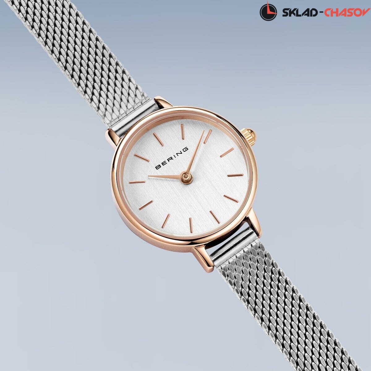 Женские аналоговые кварцевые наручные часы Classic Collection. Механизм SEIKO VJ20. Центральные часовая и минутная стрелки. Серебристый циферблат с часовыми метками в виде штрихов. Круглый стальной полированный корпус с покрытием цвета розового золота. Диаметр корпуса 22 мм, толщина 6 мм. Устойчивое к возникновению мелких царапин плоское сапфировое стекло. Стальной браслет миланского плетения шириной 8 мм. Водозащита WR 30 (брызги)