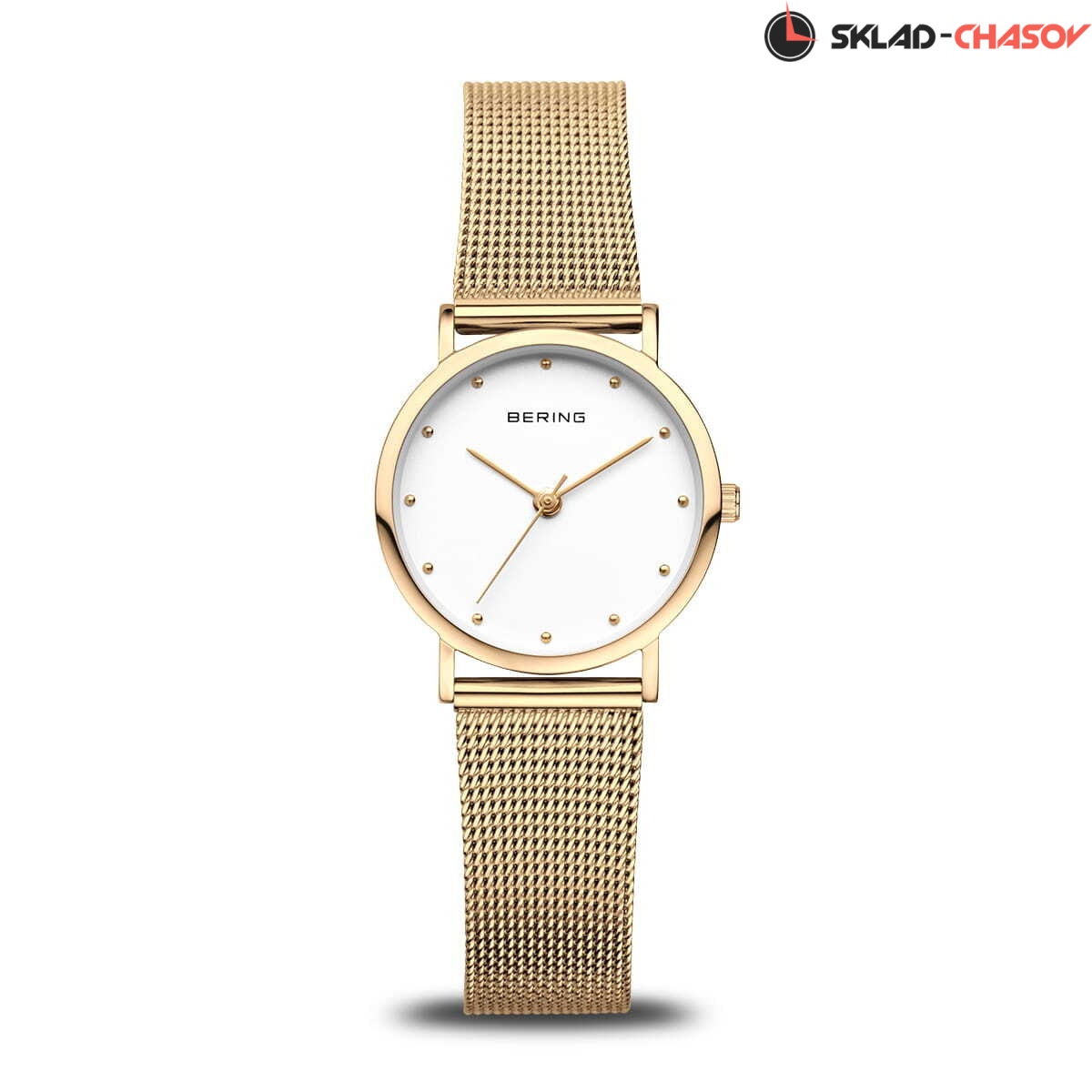 Женские аналоговые кварцевые наручные часы. Classic Collection. Центральные часовая, минутная и секундная стрелки. Белый циферблат с часовыми метками в виде точек. Круглый стальной полированный корпус с покрытием цвета жёлтого золота. Диаметр корпуса 26 мм, толщина 9 мм. Устойчивое к возникновению мелких царапин плоское сапфировое стекло. Стальной браслет миланского плетения с покрытием цвета жёлтого золота. Ширина браслета 14 мм. Водозащита WR 30 (брызги).