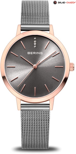 • Серый циферблат с кристаллами и гильошированием в виде солнечных лучей.