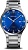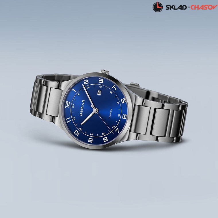 Синий циферблат с гильошированием в виде солнечных лучей.