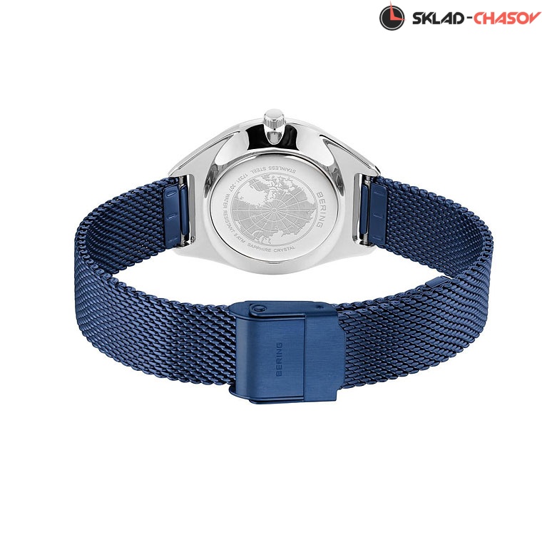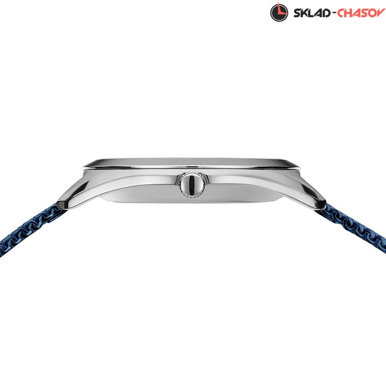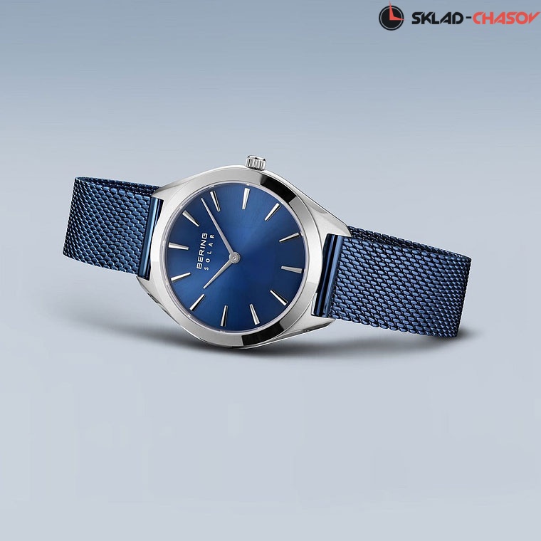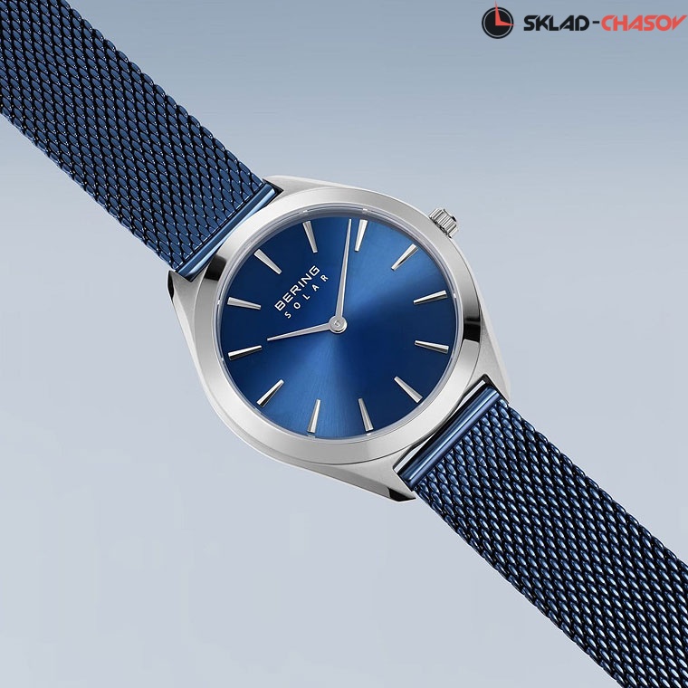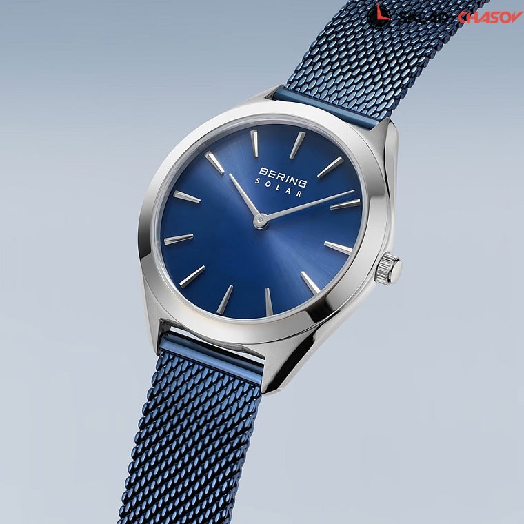 Синий циферблат с гильошированием в виде солнечных лучей.