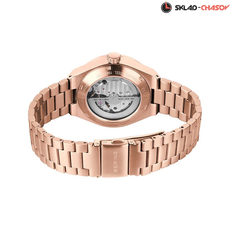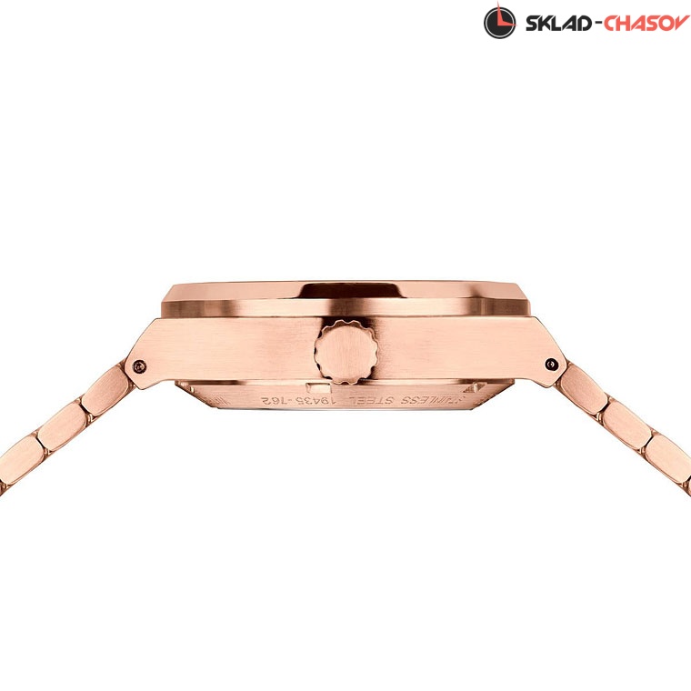 • Стальной корпус с сатинажем и IP-покрытием розовое золото. Диаметр 35мм.