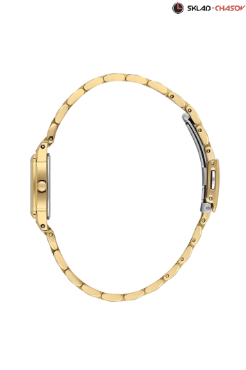 - циферблат часов выполнен с метками в виде штрихов и украшен логотипом бренда;