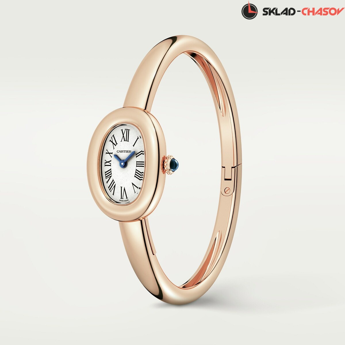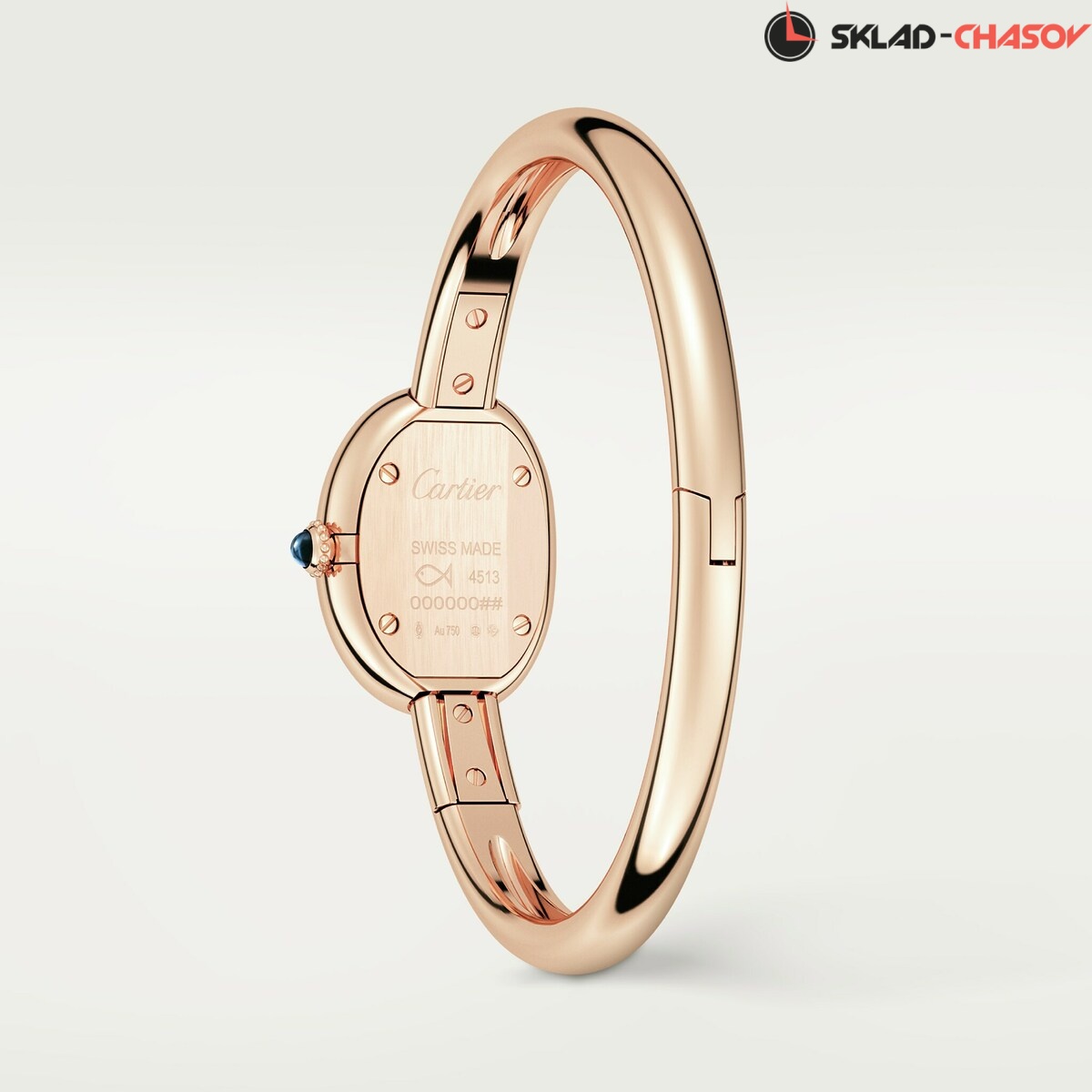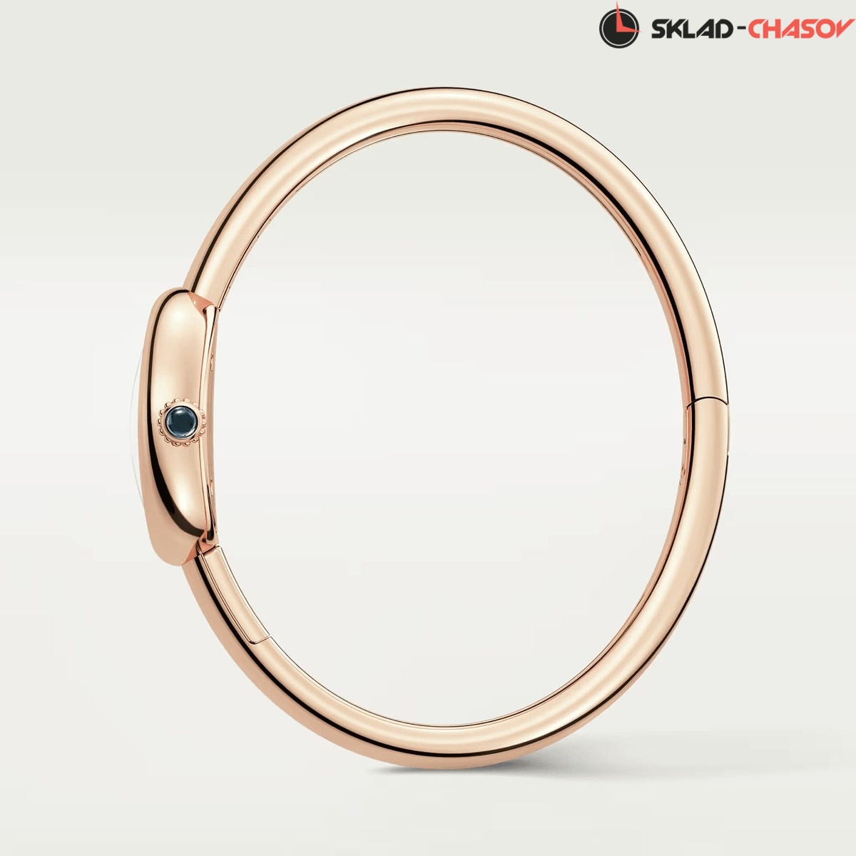 Модель Cartier WGBA0020 с цельным браслетом из розового золота 18K, раскрывающимся в сторону.