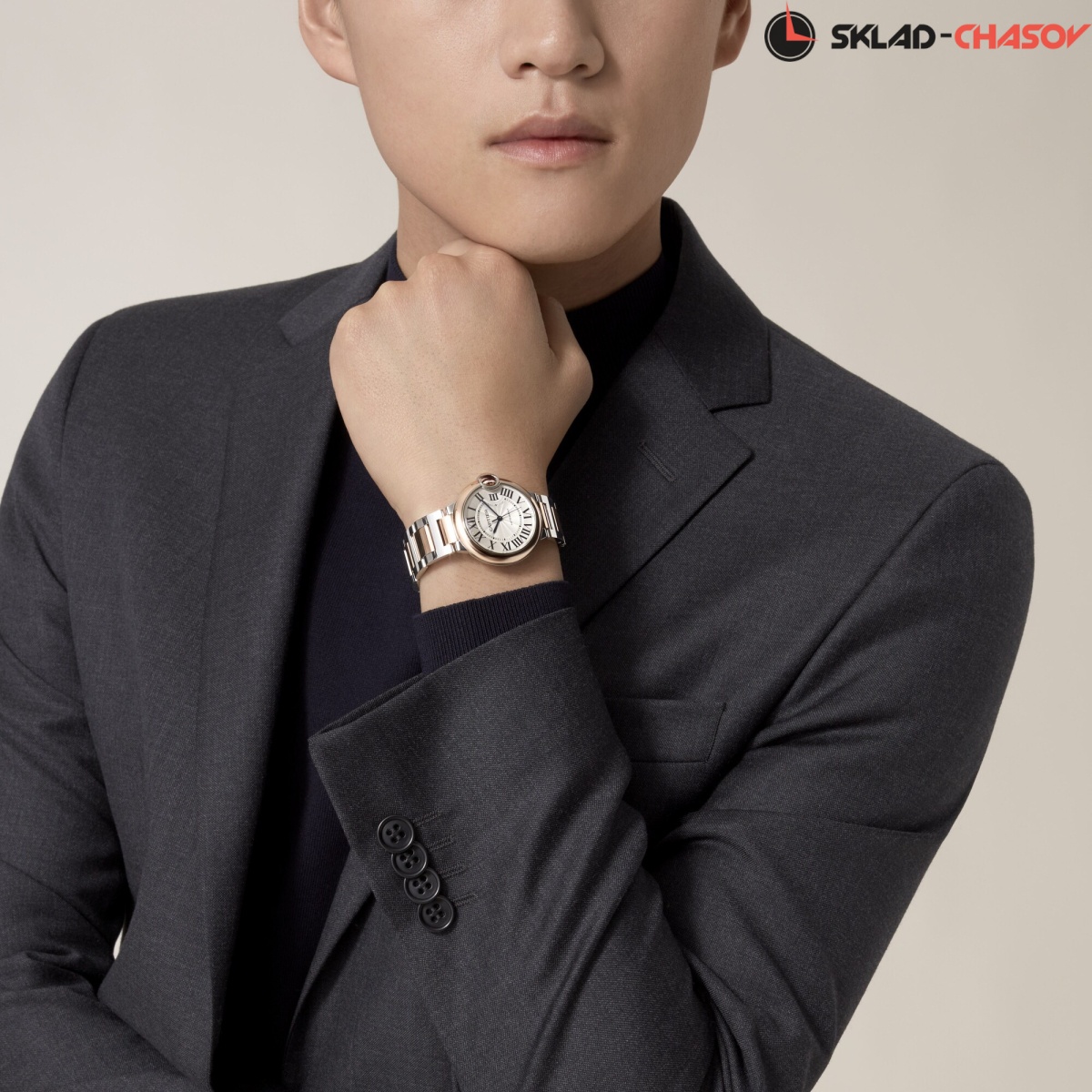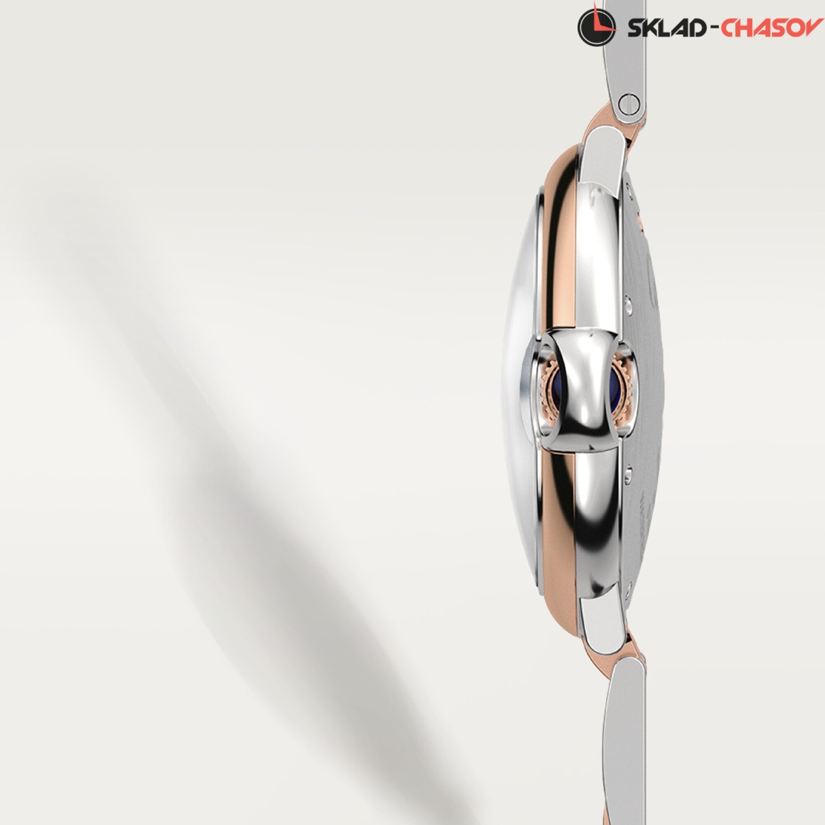 Модель Cartier W2BB0003 с литым браслетом из нержавеющей стали и розового золота 18K, браслетная застежка “бабочка”.
