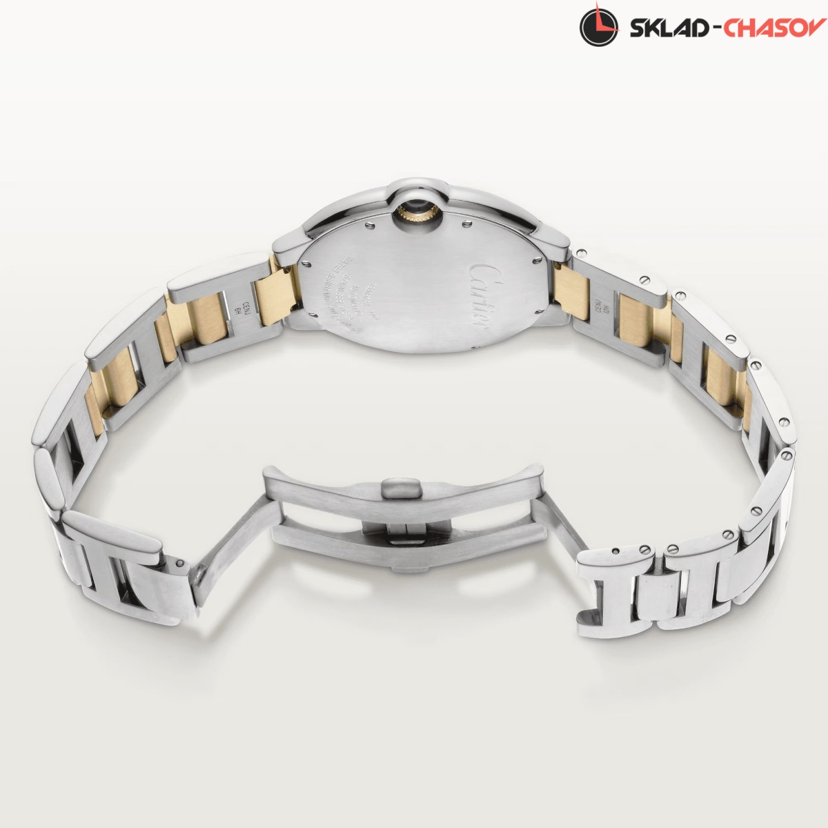 Модель Cartier W2BB0022 с литым браслетом из нержавеющей стали и желтого золота 18K, браслетная застежка “бабочка”.