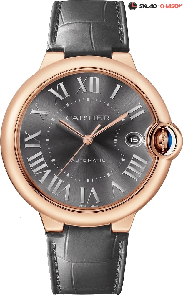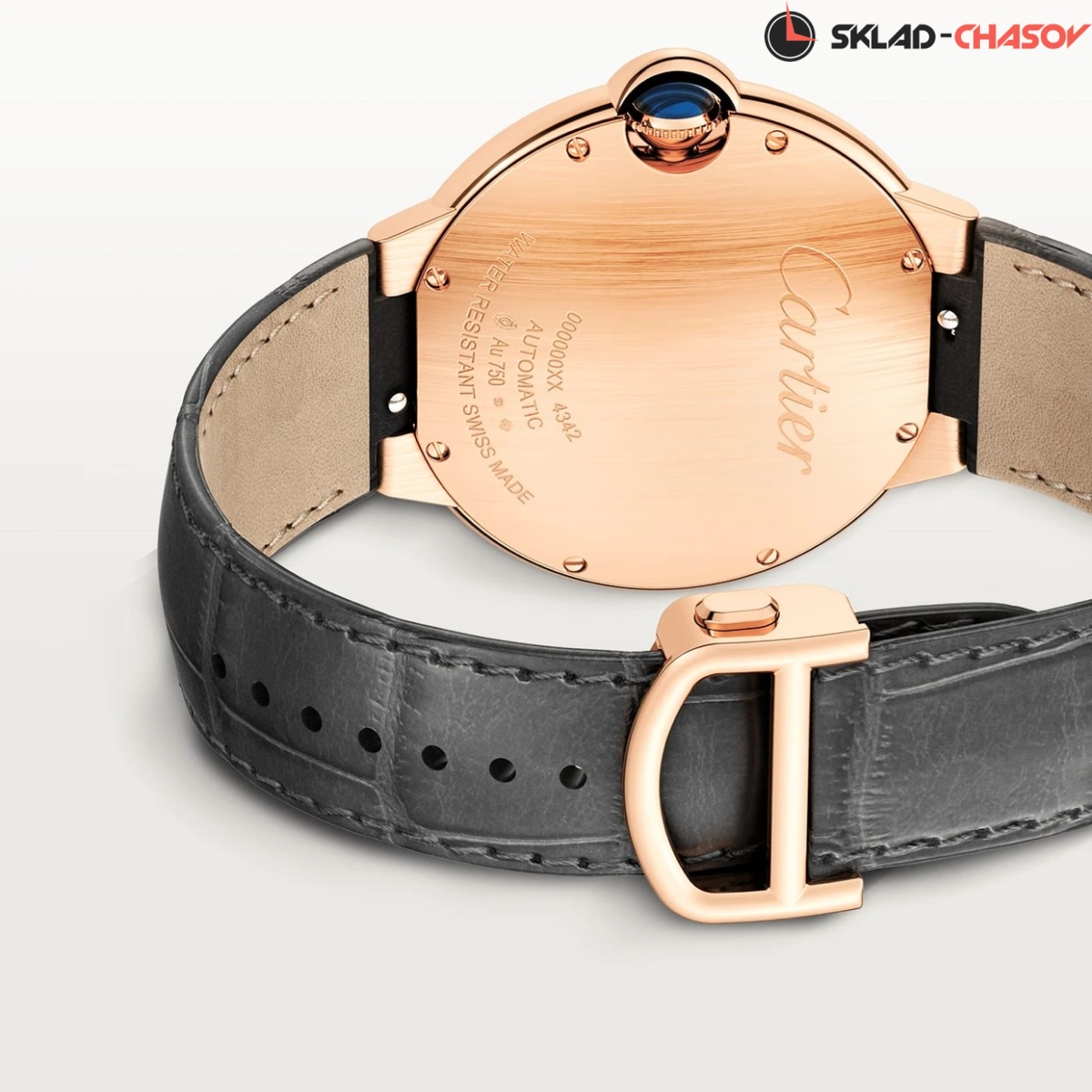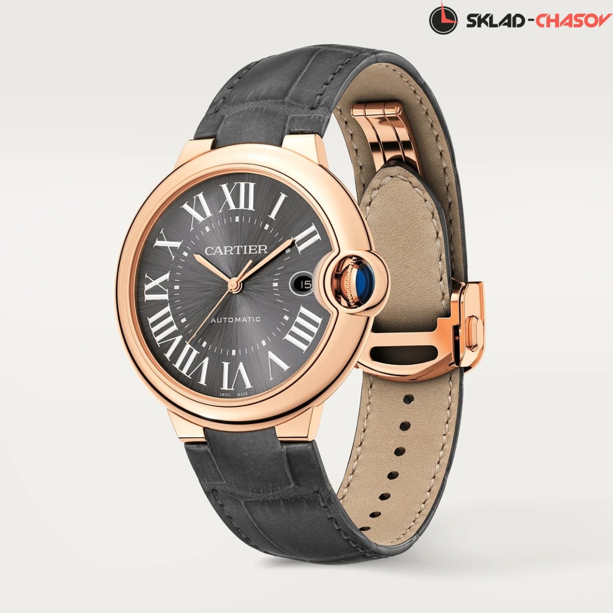 Модель Cartier WGBB0050 с ремешком из кожи аллигатора серого цвета, браслетная застежка из розового золота 18K.