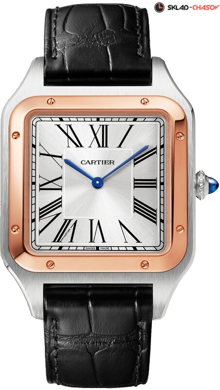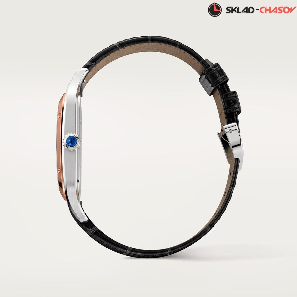 Модель Cartier W2SA0017 с черным ремешком из кожи аллигатора, классическая застежка пряжка из нержавеющей стали.