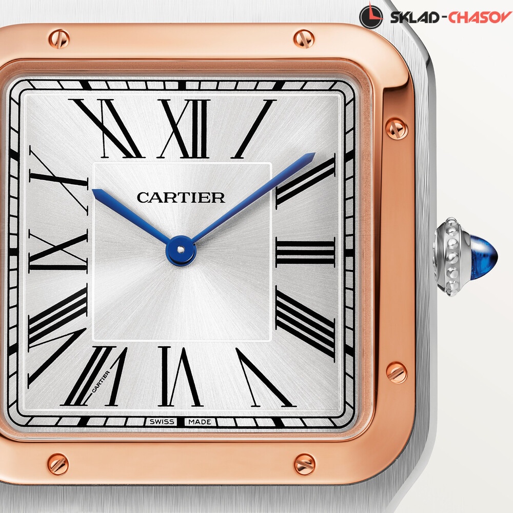 Швейцарские часы Cartier Santos-Dumont XL W2SA0017 созданы для мужчин. Первые часы Santos были произведены Луи Картье в 1904 году для авиаторов, чтобы сделать удобным определение времени во время полета, находясь за штурвалом. Теперь эти революционные для своего времени наручные часы с геометричным циферблатом и узнаваемыми декоративными винтами на безеле стали настоящей легендой.