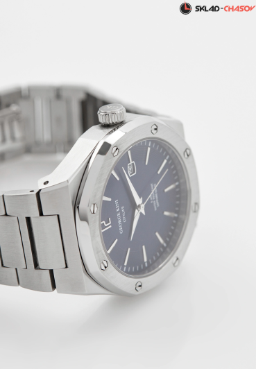 - блестящий циферблат синего цвета выполнен с метками в виде штрихов, нанесена полировка;