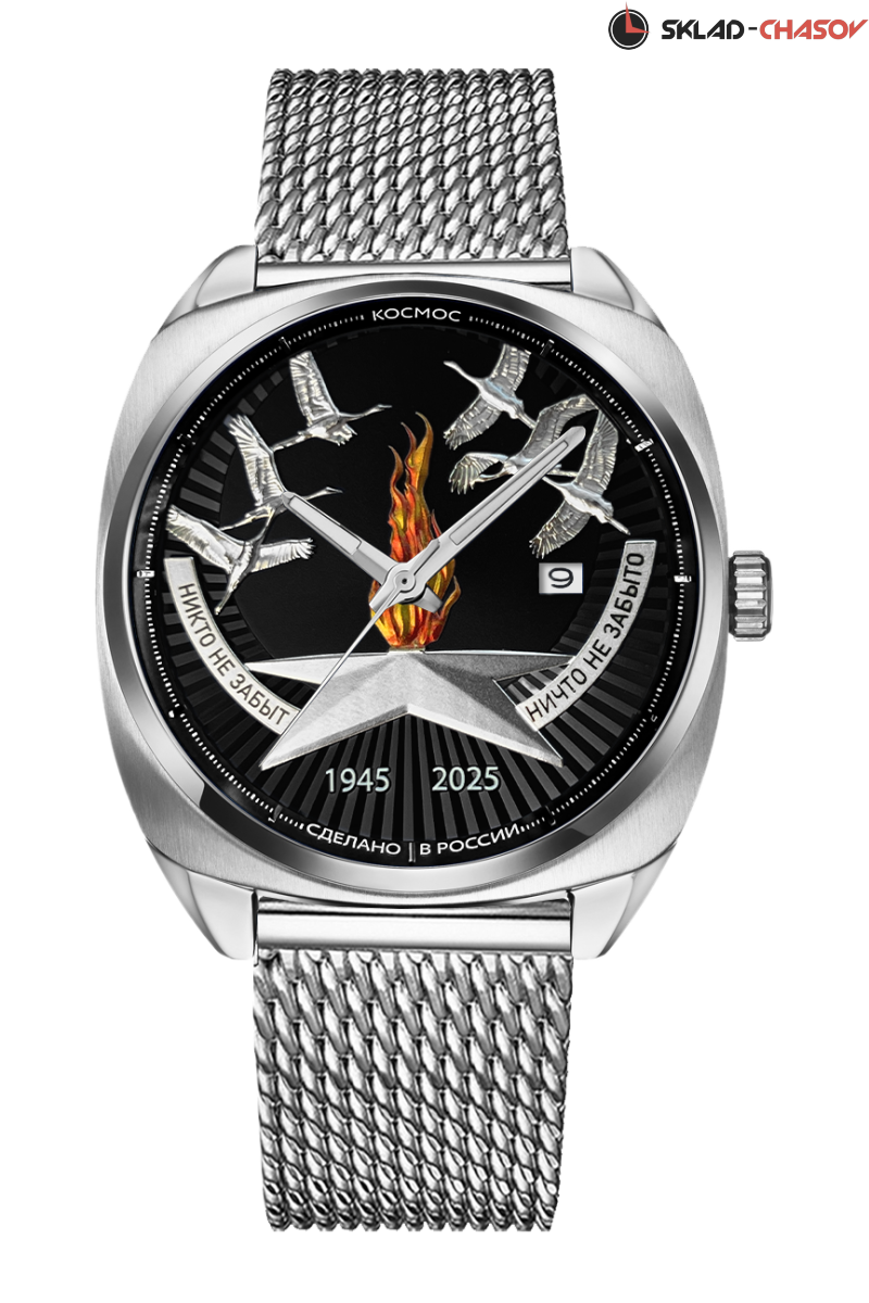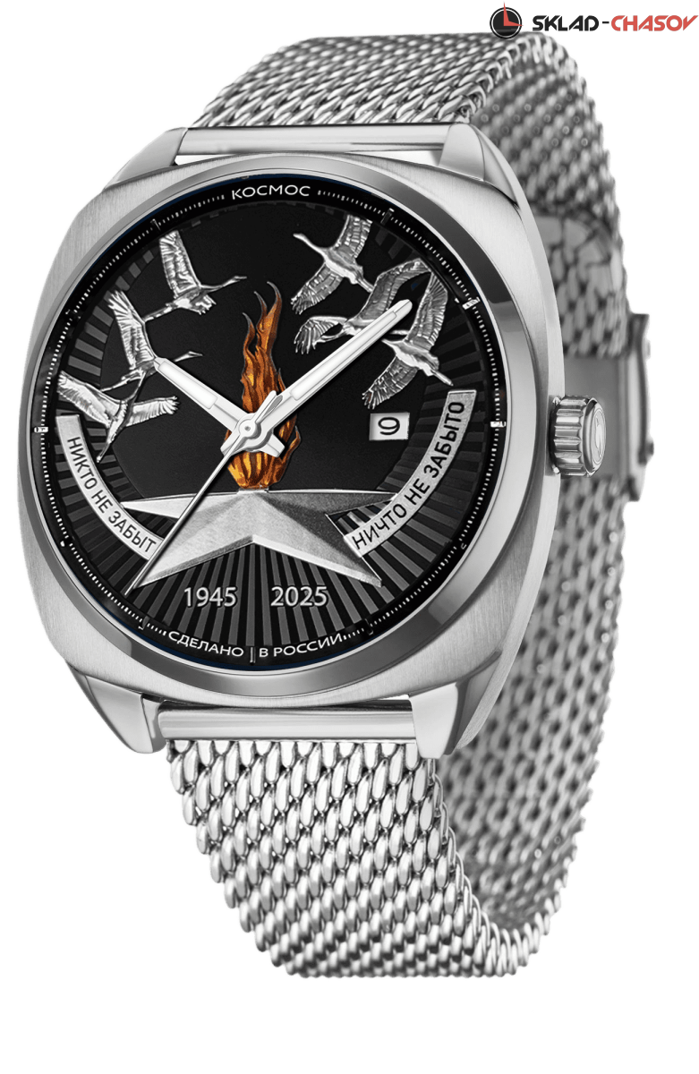 В честь 80-летия Великой Победы бренд «Космос» выпускает уникальную серию часов «80 лет Победы», посвященную героям, отстоявшим мир и свободу в годы Великой Отечественной войны. Каждая деталь коллекции символизирует благодарность поколений и служит напоминанием о цене, заплаченной за мирное небо над головой. Вечный огонь, журавли, имена городов-героев — это мост между прошлым и настоящим. Мы хотим, чтобы владельцы этих часов чувствовали связь с теми, кто подарил нам жизнь.