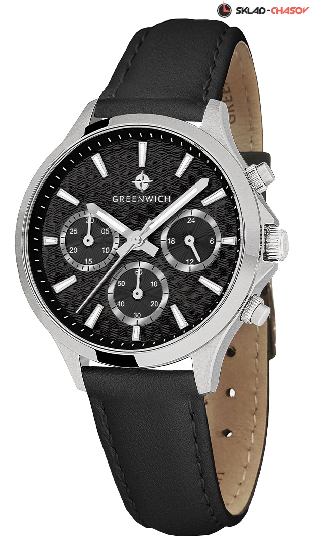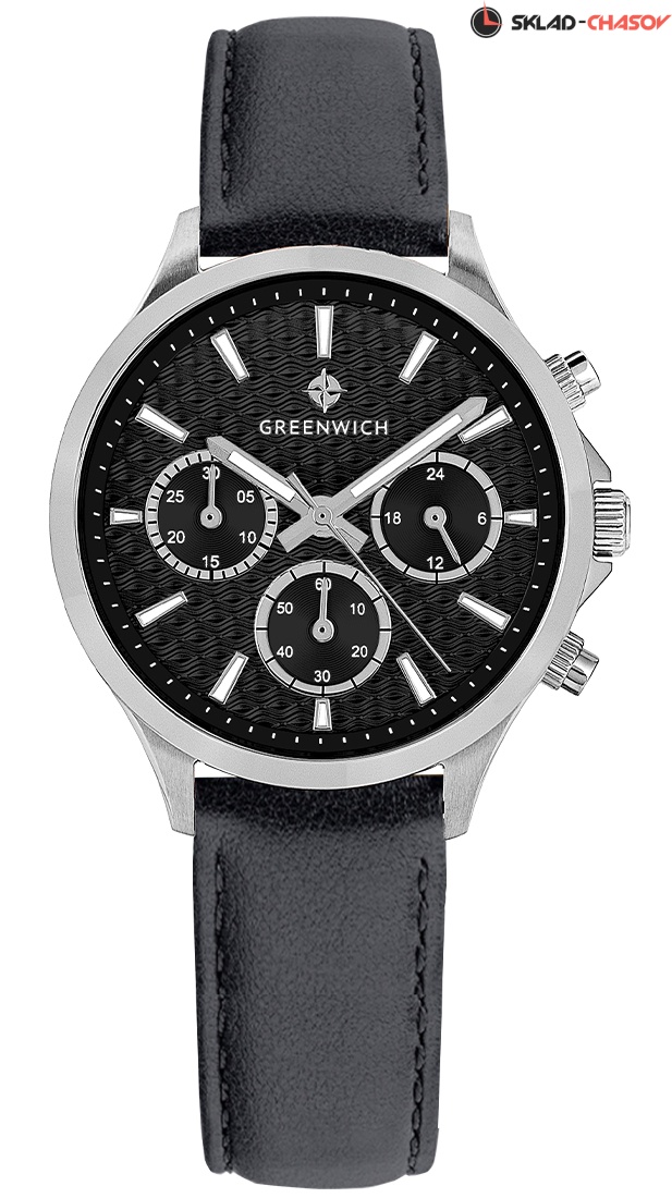 Часы GW 363.11.31 серии Mermaid - находка для тех, кто ищет надежные и, в тоже время, элегантные часы. Кварцевый механизм, установленный в 35-миллиметровый корпус из нержавеющей стали, оснащен функционалом хронографа: вынесенные на дополнительные индикаторы стрелки позволяют засекать время в минутах и секундах. Кроме этого, на черном циферблате разместили индикатор 24-часов. Каждый из индикаторов выделен накладной рамкой с зеркальной полировкой. Накладные риски и центральные стрелки покрыты люминесцентным составом. Элегантность модели подчеркивает гильоше: выполненное в виде волнообразных линий, оно дарит циферблату объем и глубину. В часах установлено минеральное стекло. Водостойкость 10 атмосфер. Хронограф серии Mermaid можно приобрести на ремешке из натуральной кожи черного цвета. Застежка-пряжка выполнена из нержавеющей стали.