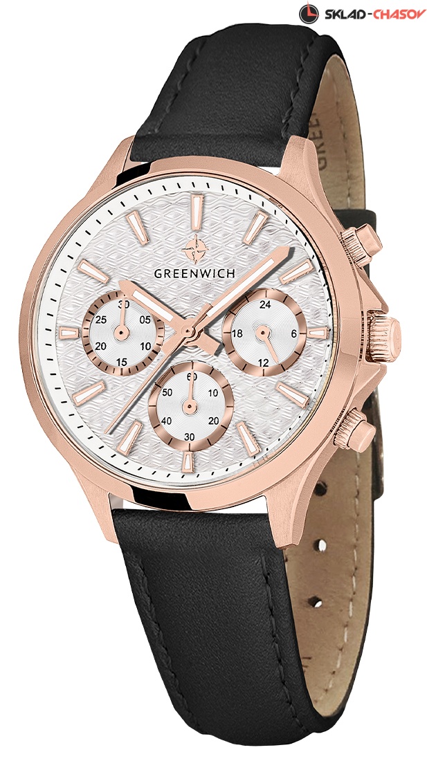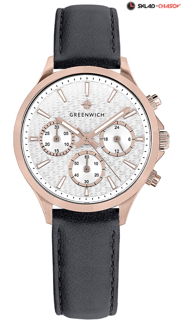 Часы GW 363.41.33 серии Mermaid - находка для тех, кто ищет надежные и, в тоже время, элегантные часы. Кварцевый механизм, установленный в 35-миллиметровый корпус из нержавеющей стали с PVD-покрытием из розового золота, оснащен функционалом хронографа: вынесенные на дополнительные индикаторы стрелки позволяют засекать время в минутах и секундах. Кроме этого, на белом циферблате разместили индикатор 24-часов. Каждый из индикаторов выделен накладной рамкой с зеркальной полировкой. Накладные риски и центральные стрелки покрыты люминесцентным составом. Элегантность модели подчеркивает гильоше: выполненное в виде волнообразных линий, оно дарит циферблату объем и глубину. В часах установлено минеральное стекло. Водостойкость 10 атмосфер. Хронограф серии Mermaid можно приобрести на